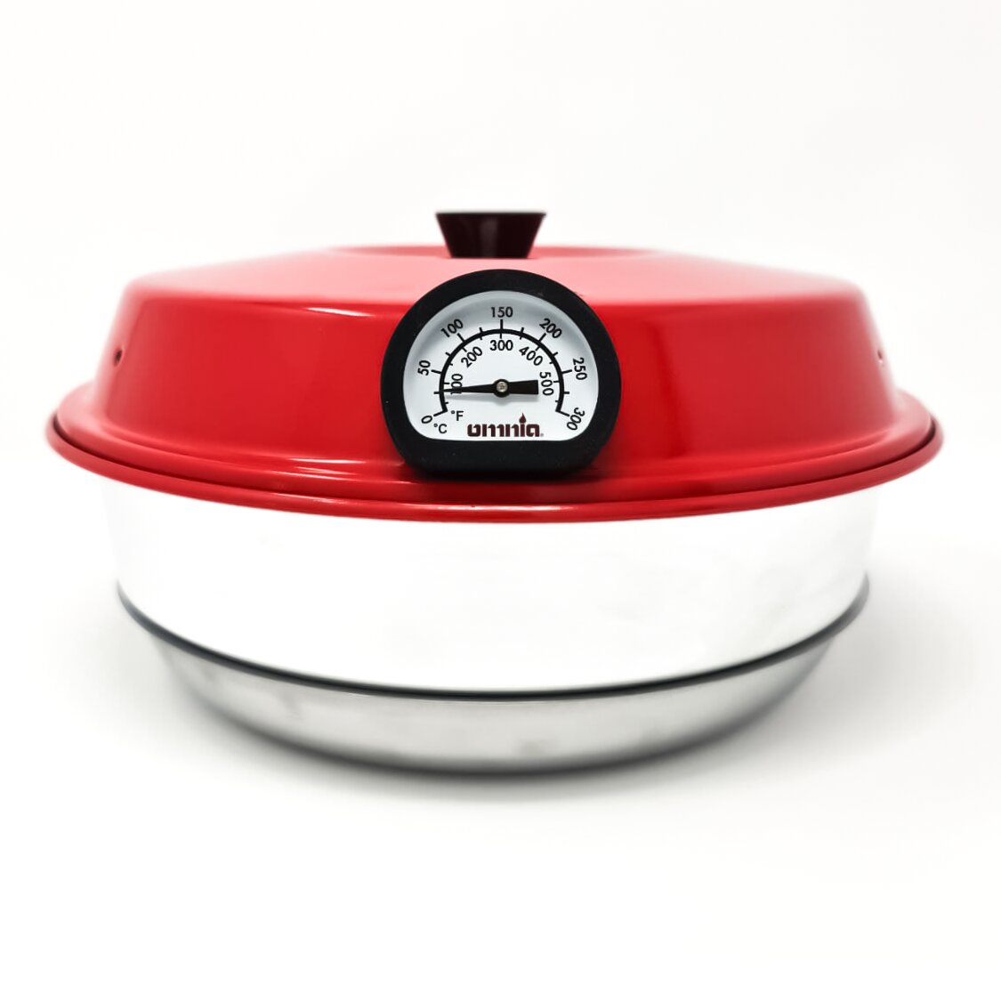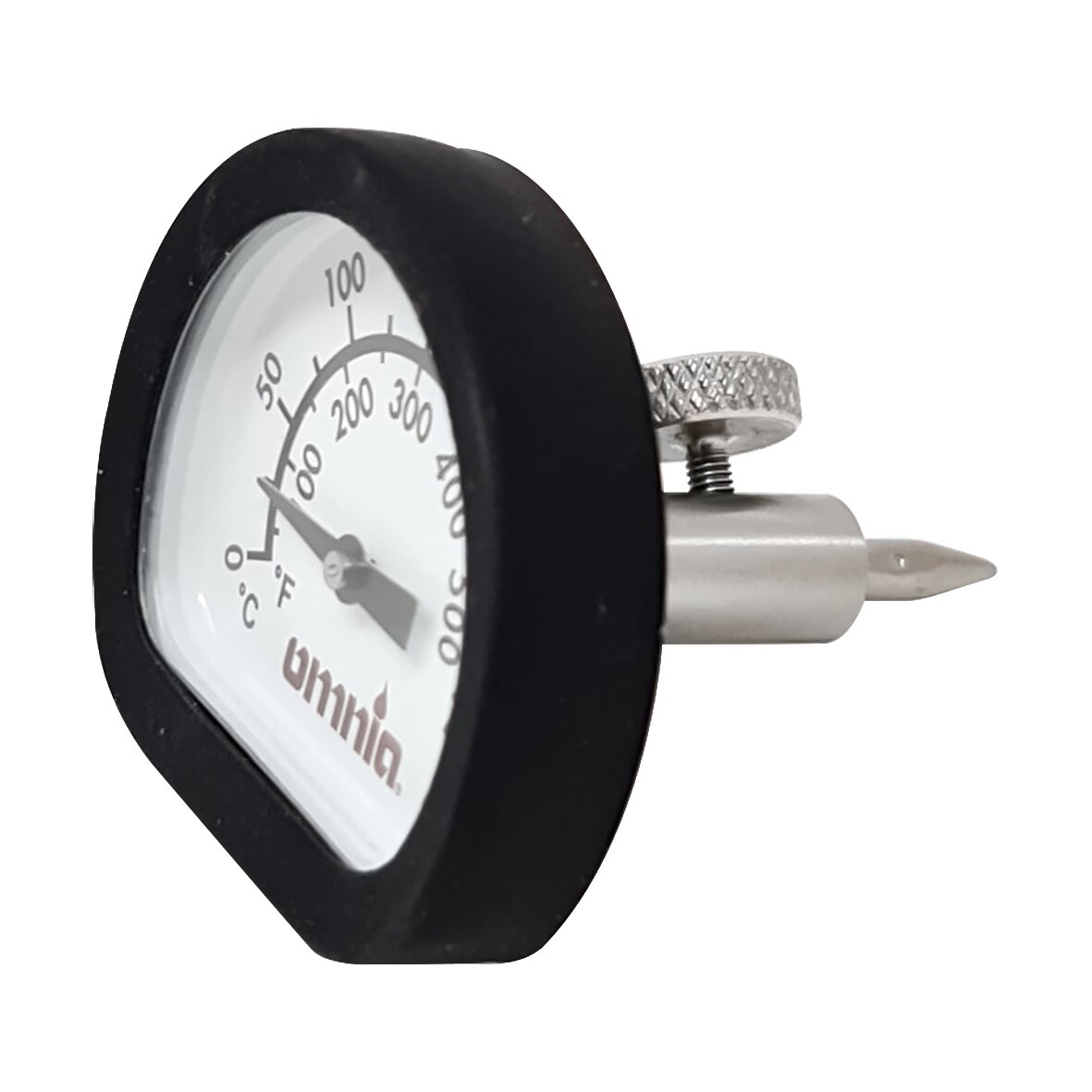 Attached to the lid, in one of the ventilation holes. Can also be used like a meat thermometer.