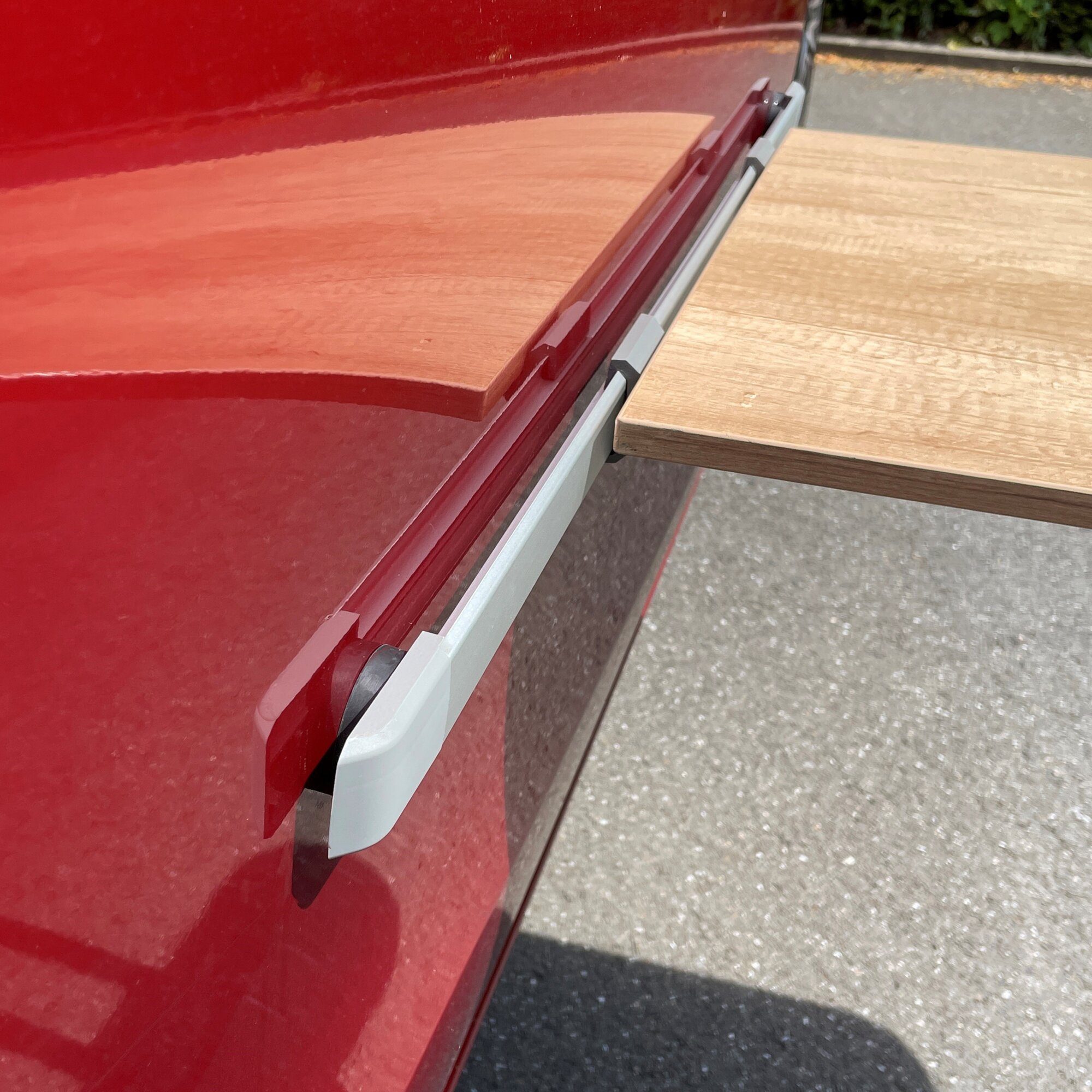 Table sliding rail aluminium black, L = 600 mm, for magnetic attachment on the outside of the van, including table holder.