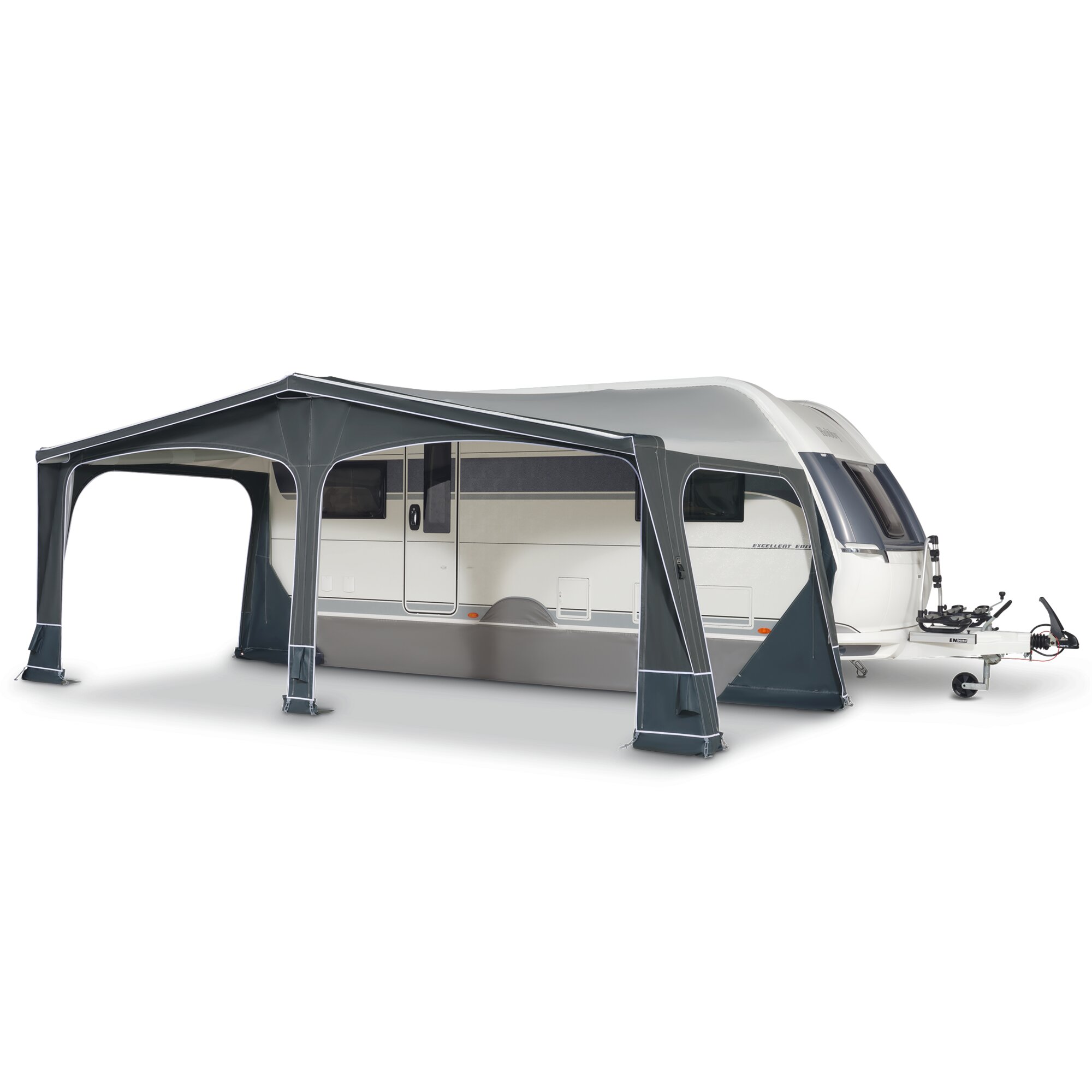 The travel awning Valor Air from Doréma sets new standards in terms of value for money and quality. Made in Europe, it impresses with the use of high-quality materials such as UV-stable Airtex in the roof and TenCate in the front and side walls. This combination makes it exceptionally durable and weatherproof. Quality zips from Kroko and Opti guarantee reliable use. Removable elements allow for flexible use as a veranda or sun canopy. Large window fronts and mosquito/mesh inserts in the sides provide pleasant ventilation. Also available in sizes for dual-axle vehicles.