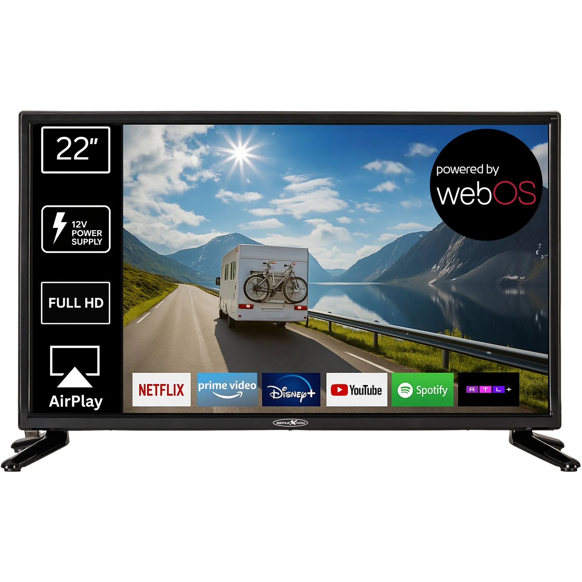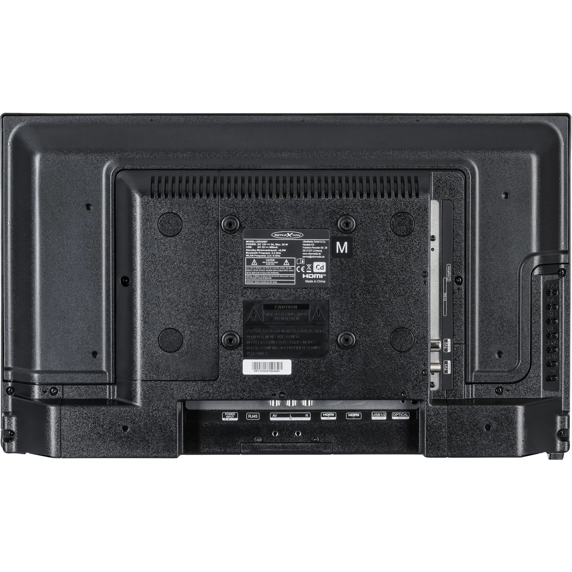 Power supply 12/230 V, PAL/SECAM colour video system, Bluetooth, Smart TV, 1000-page teletext.