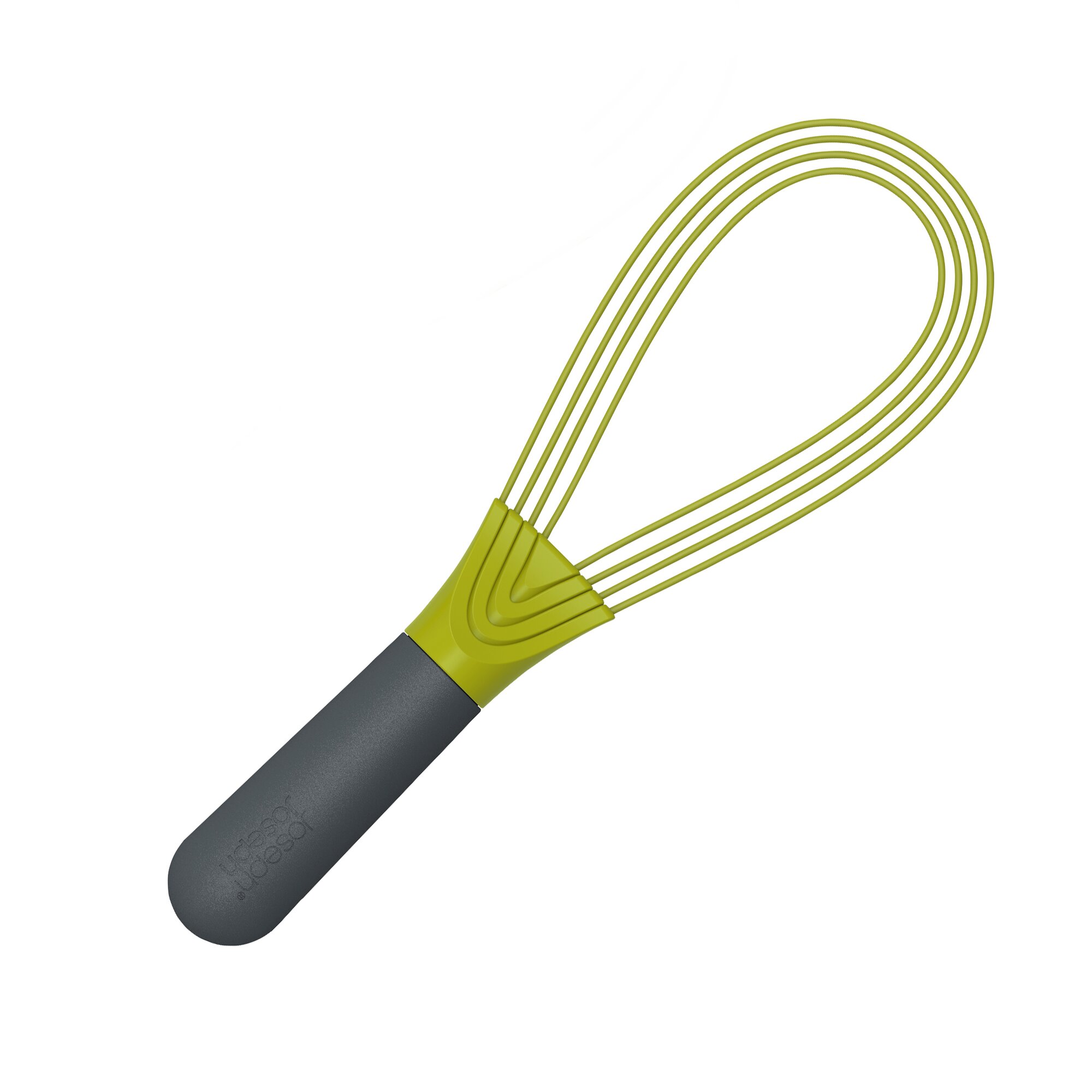 Two-in-one whisk with rotating handle. Easy to store and to clean. Suitable for non-stick tableware and dishwasher-safe.