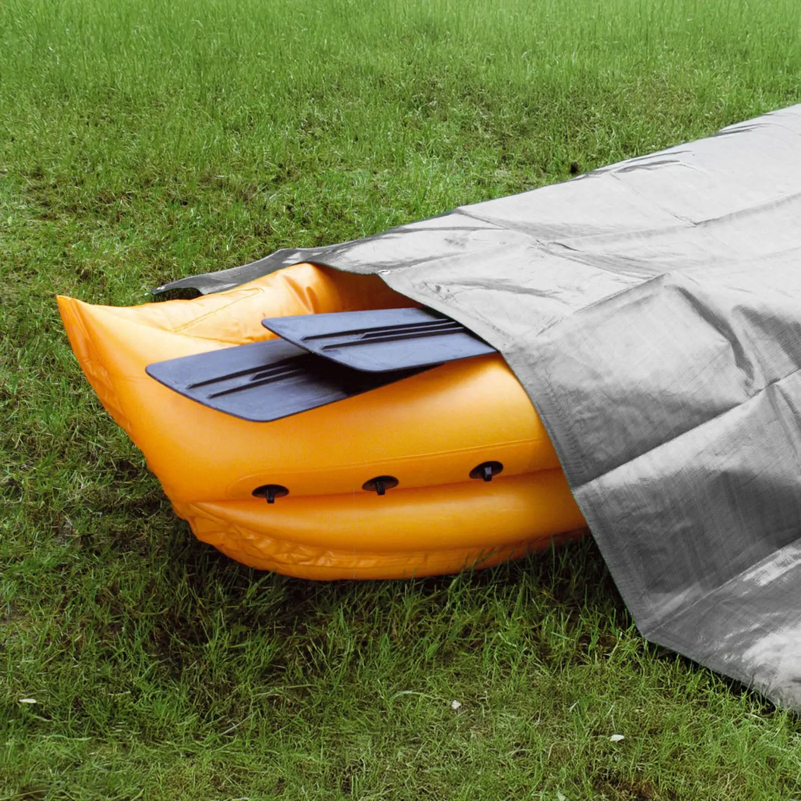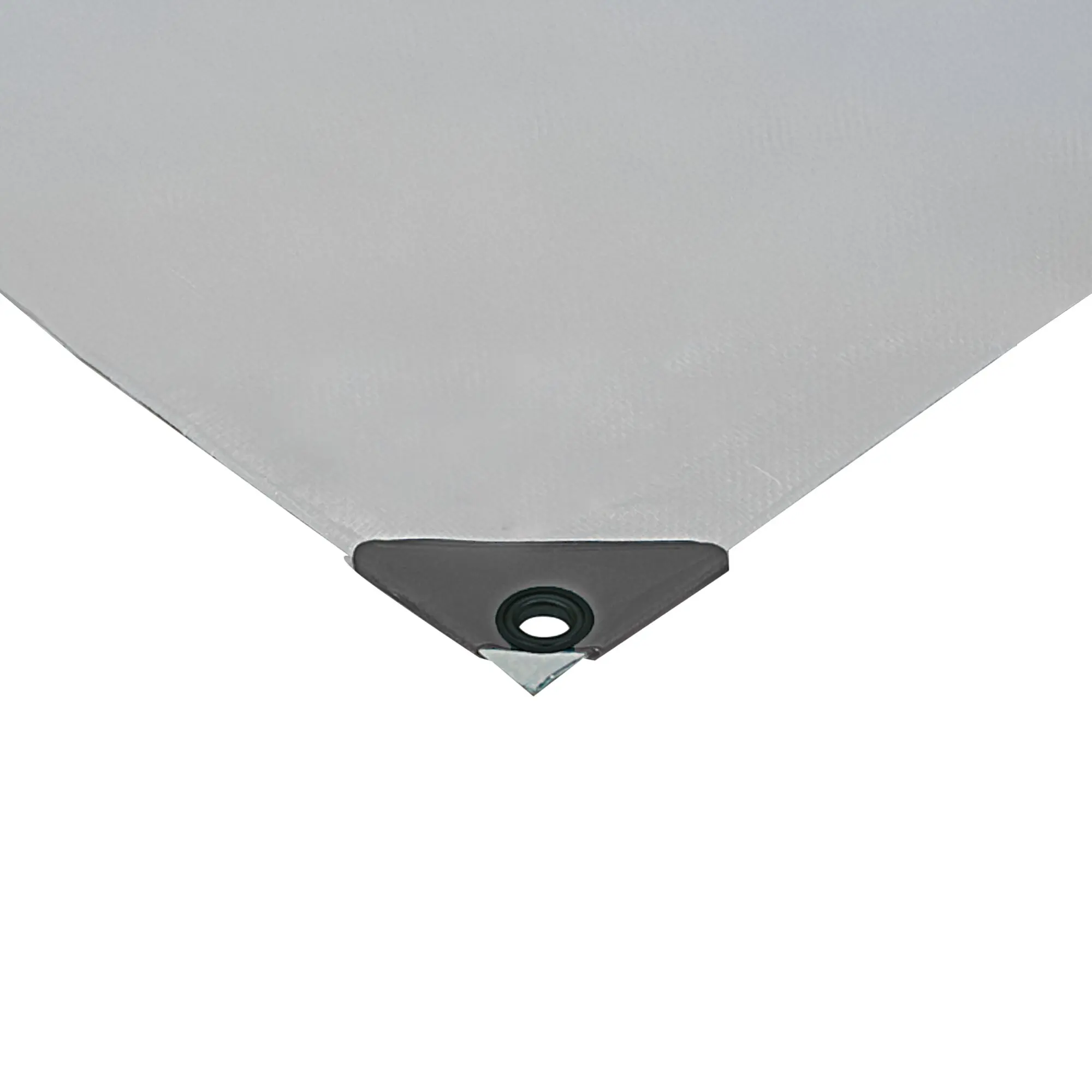 Universally usable PE tarps laminated on both sides. Material thickness 170 g/m². The edge is reinforced with a welded-in cord. Plastic eyelets are incorporated all around at a distance of 50 cm. The corners are fitted with plastic plates. Available in 6 sizes.