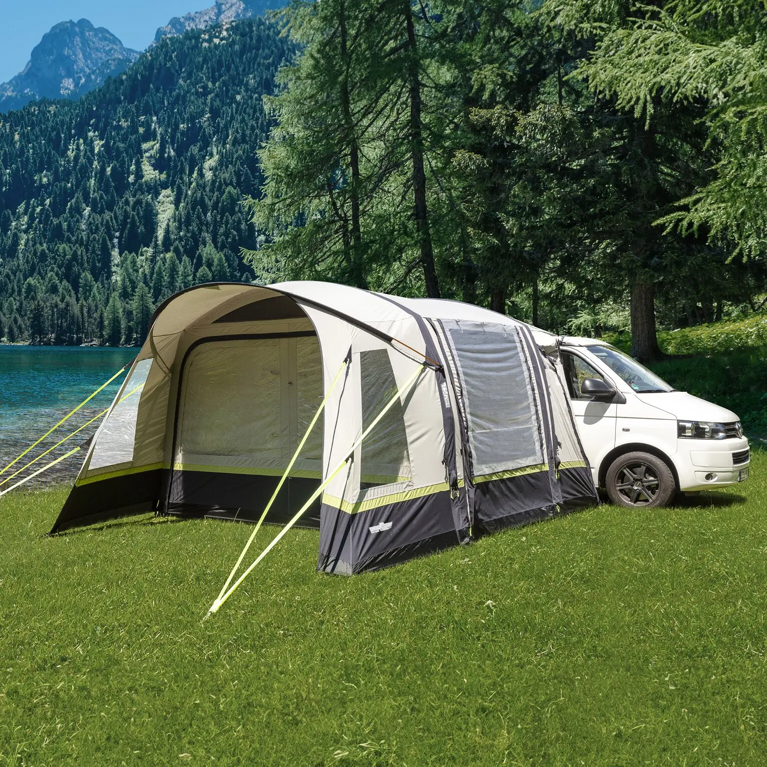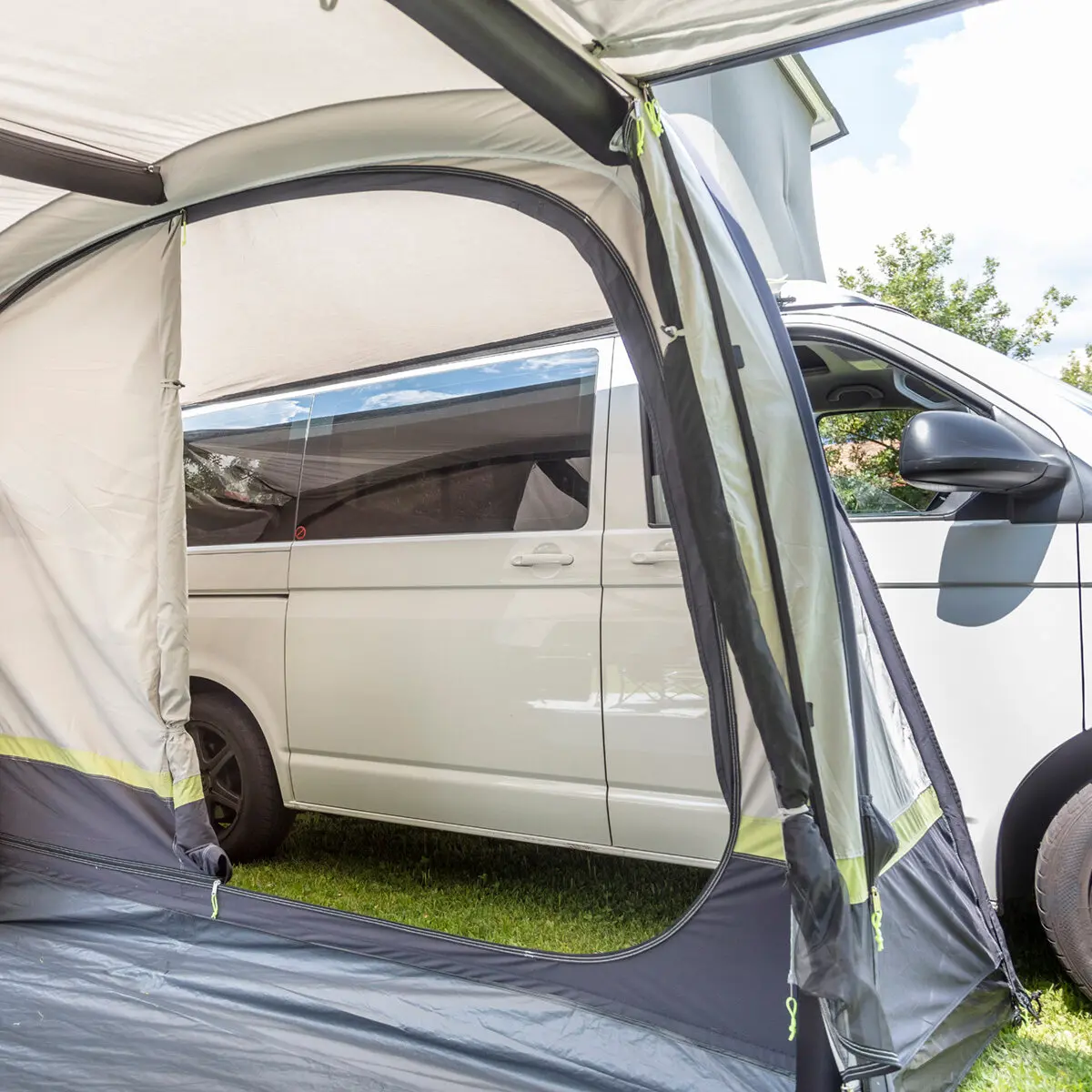 The Advantourer is the perfect van awning. Thanks to the polycotton flysheet, the awning is significantly more breathable and has a higher UV-resistance than standard polyester tents. A large porch area invites you to sit back and relax.