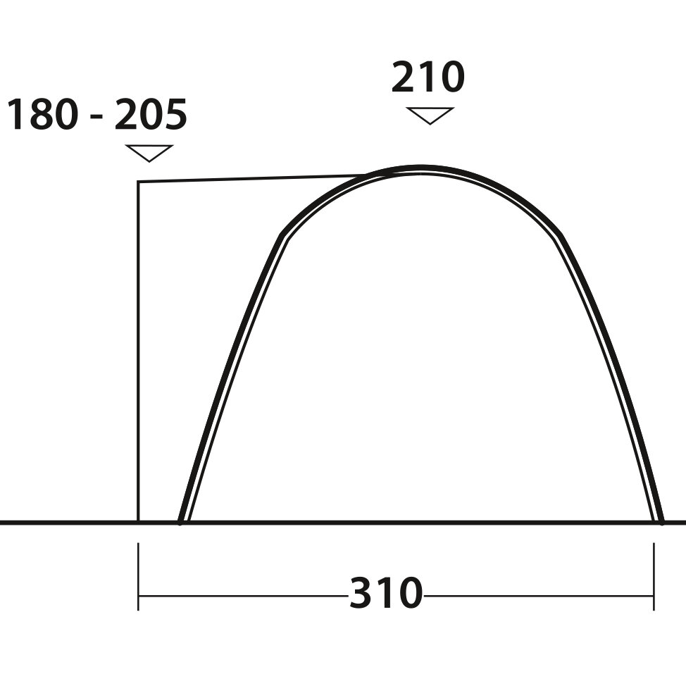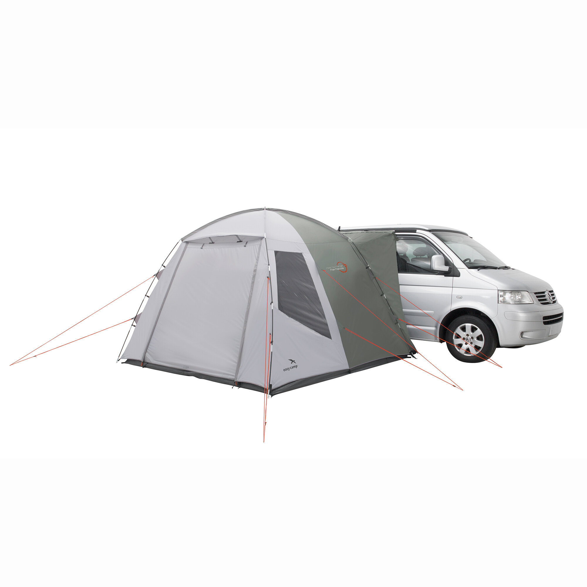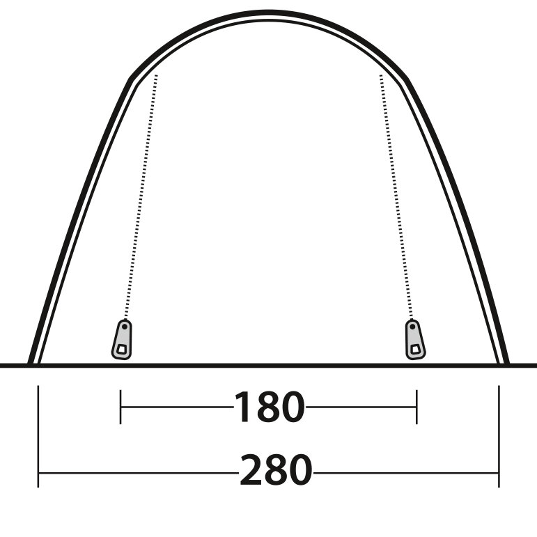Thanks to the bent fibreglass poles, the van awning Fairfields provides more space and headroom. The flysheet can be quickly and easily attached to the poles. It fits closely to the vehicle and can be quickly and easily attached to or detached from the vehicle. This way, you can use it as a freestanding awning and leave it at the campsite for the day. Opposite the vehicle entrance, a rain-protected ventilation opening above the large front entrance guarantees optimal ventilation. Thanks to the detachable groundsheet, which can be rolled up, and the large side windows, you can use the awning in a variety of ways. Vehicle access with a roof mounting length of 215 cm (piping ø 7 mm).
