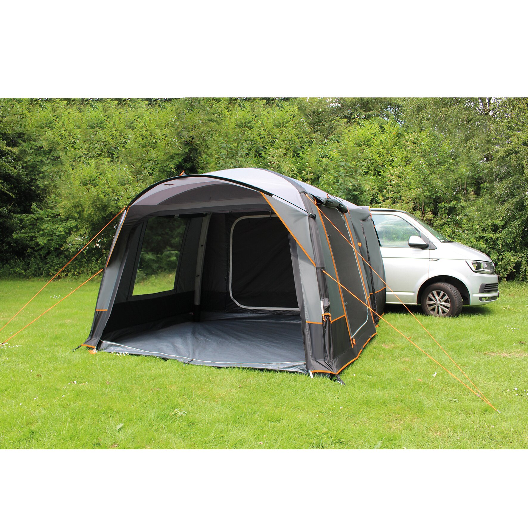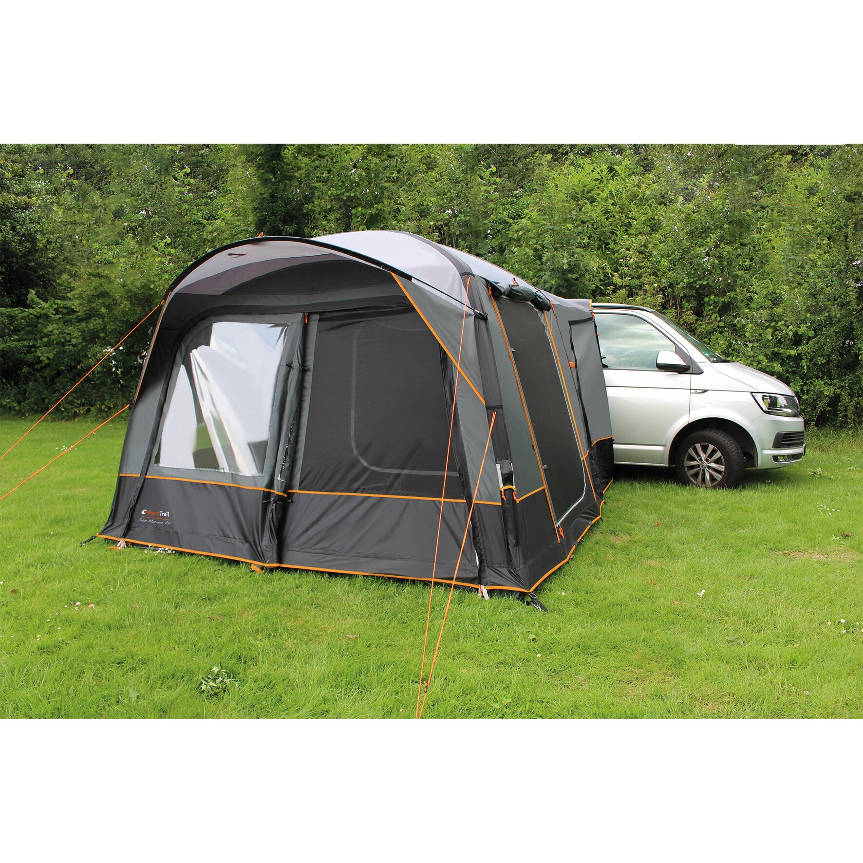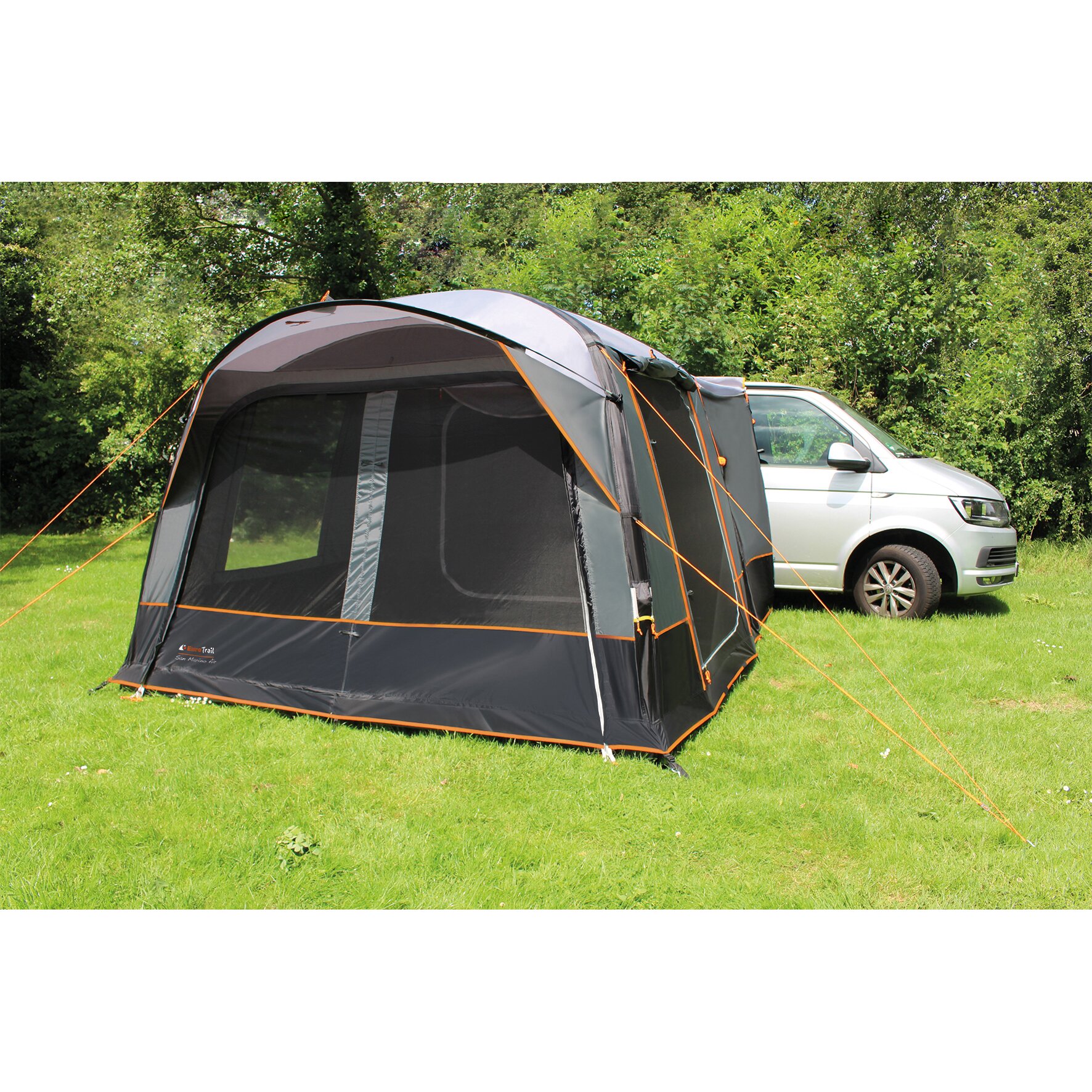 Freestanding van awning with a convenient canopy above the entrance. Ventilation options in the tent keep the air inside fresh. The San Marino van awning can be attached to the vehicle with a 7 mm piping, a connecting pole or with Velcro tape on the roof rail. The Portofino RV Air is equipped with a 6+7 piping, which can be detached with a zip.
