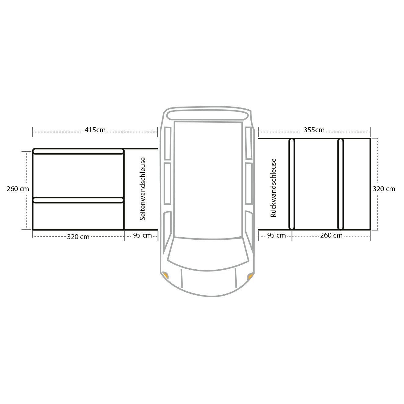 The Traveller Air Modular adapts to any situation and offers maximum flexibility when camping. The modular design allows you to individually enlarge or reduce the size of your awning or to only set it up partially. Thanks to its freestanding construction, it remains stable even when you leave. The well-thought-out air tube system ensures a quick and uncomplicated setup. With its weatherproof material boasting an impressive hydrostatic head of 10,000 mm and versatile opening options, this van awning creates a pleasant environment in any weather.