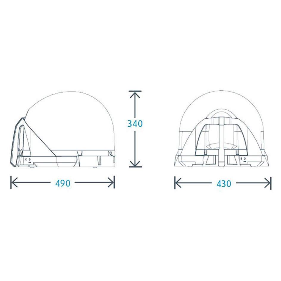 The fully automatic and receiver independent VuQube Auto II impresses with its extraordinary design, low weight and compact shape. One push of a button and it finds the desired satellite within 60 – 90 seconds by itself; the satellite can be chosen comfortably from inside the vehicle by an external control device. It is configured to Astra 1, Astra 2, Astra 3 and Hotbird. With its powerful Cassegrain dish (ø 35 cm) and a sub-reflector especially developed for this sat antenna, it nearly matches to the reception strength of a flat antenna. It delivers high-quality TV pictures in European holiday regions and moreover allows to connect a second receiver due to its Twin-LNB. Possible unevenness of the floor is balanced out automatically by the VuQubeAuto II, and it can be transported in any position. The optionally available roof mounting set (item no. 72 316, 72 319) allows permanent installation of the system on the roof of a vehicle.