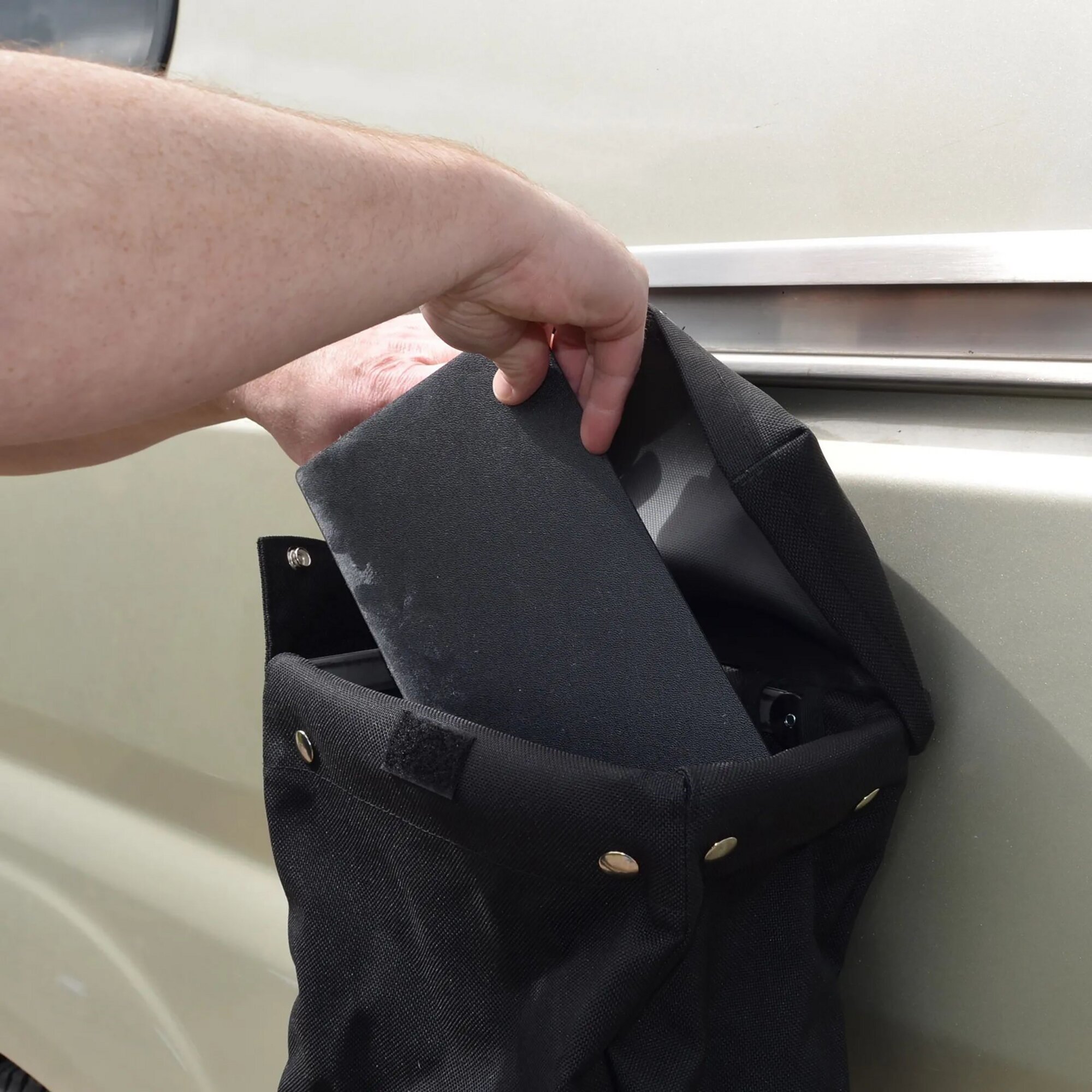 With two magnets ø 66 mm. Made of leakproof fabric, UV-resistant, folding & washable. If the surface you want to attach the magnets to is not made of steel, please additionally order the magnetic board 40 x 7 cm (610/423).