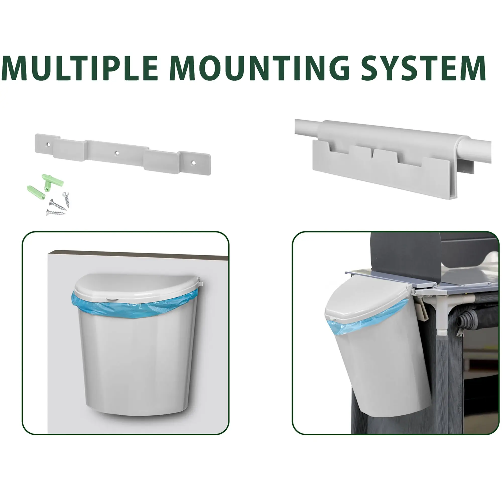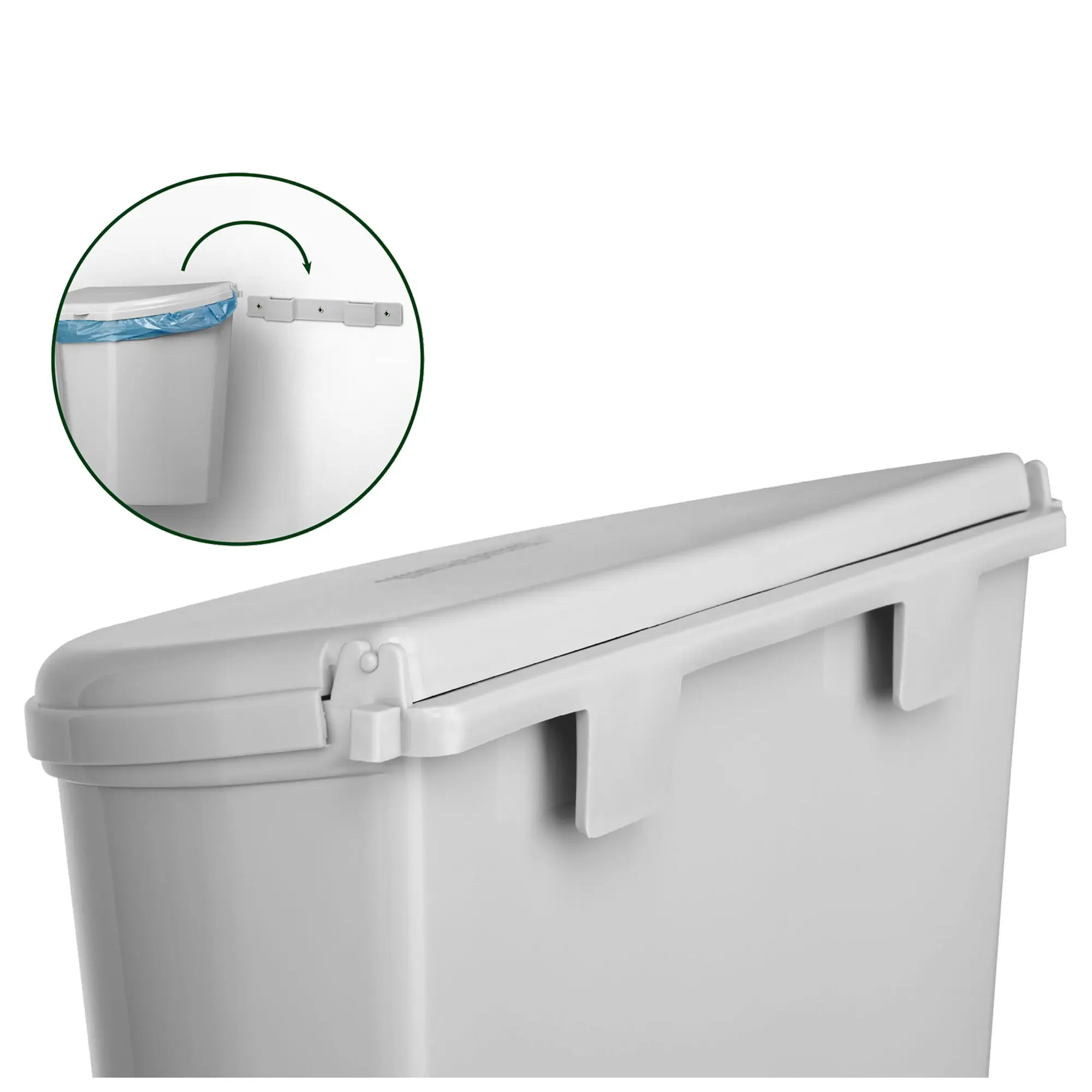The plastic waste bin is perfect for disposing of small waste in motorhomes, caravans and boats. The lid prevents the spread of bad odours. Easy installation via mounting rail for walls and cupboard doors or via a special holder that enables attachment to the round tube frame of kitchen boxes. For 10 l bin liners.