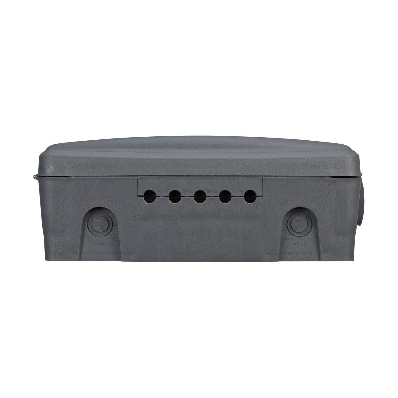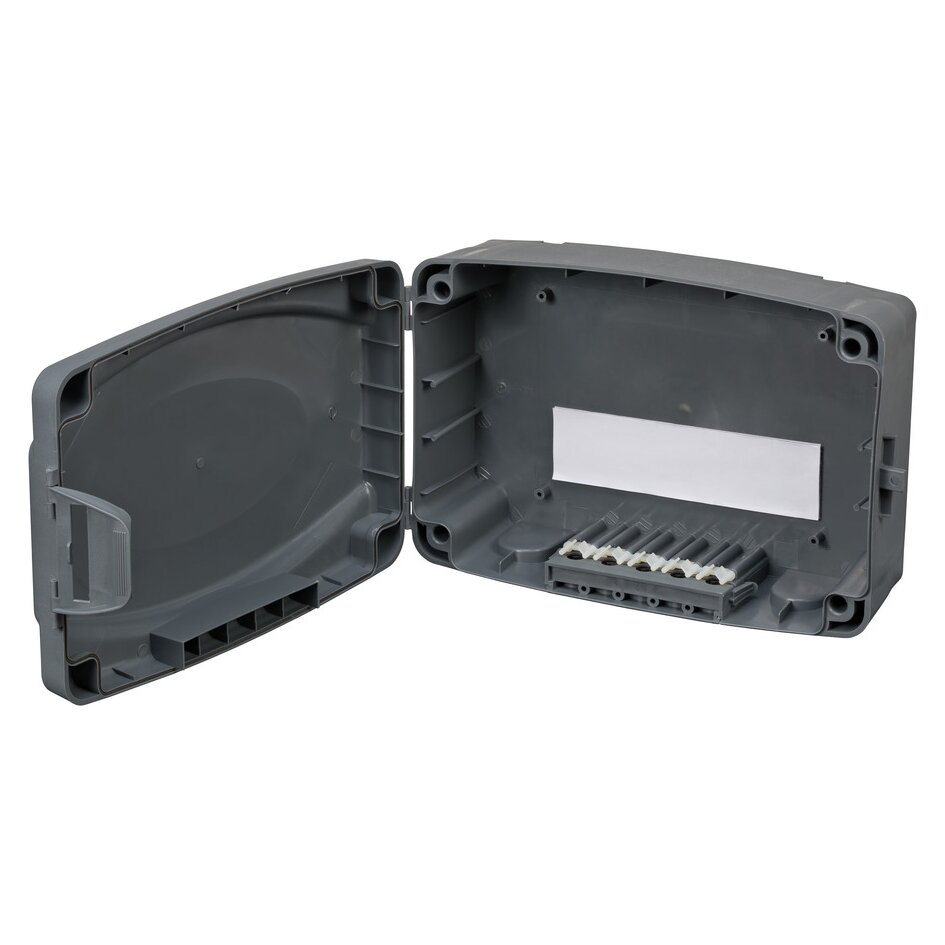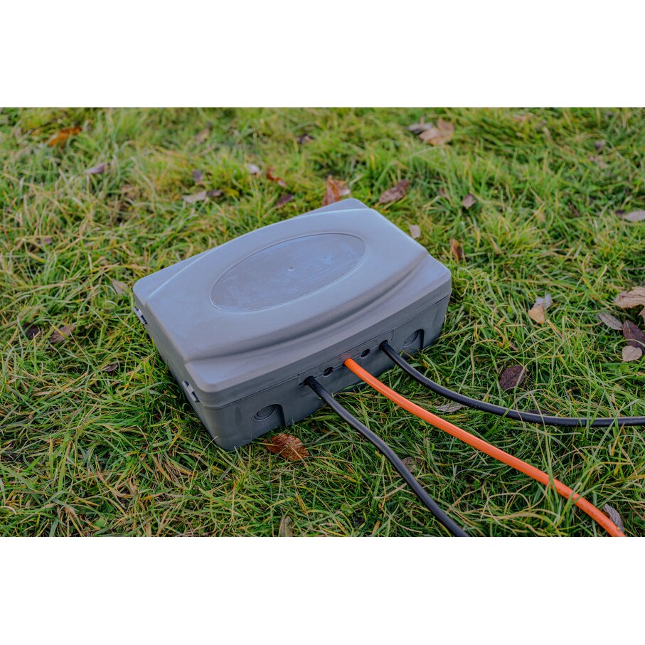 The weatherproof electronics box for outdoor use has IP54 protection and thus helps to provide a safe power supply in the garden or outdoors in general.