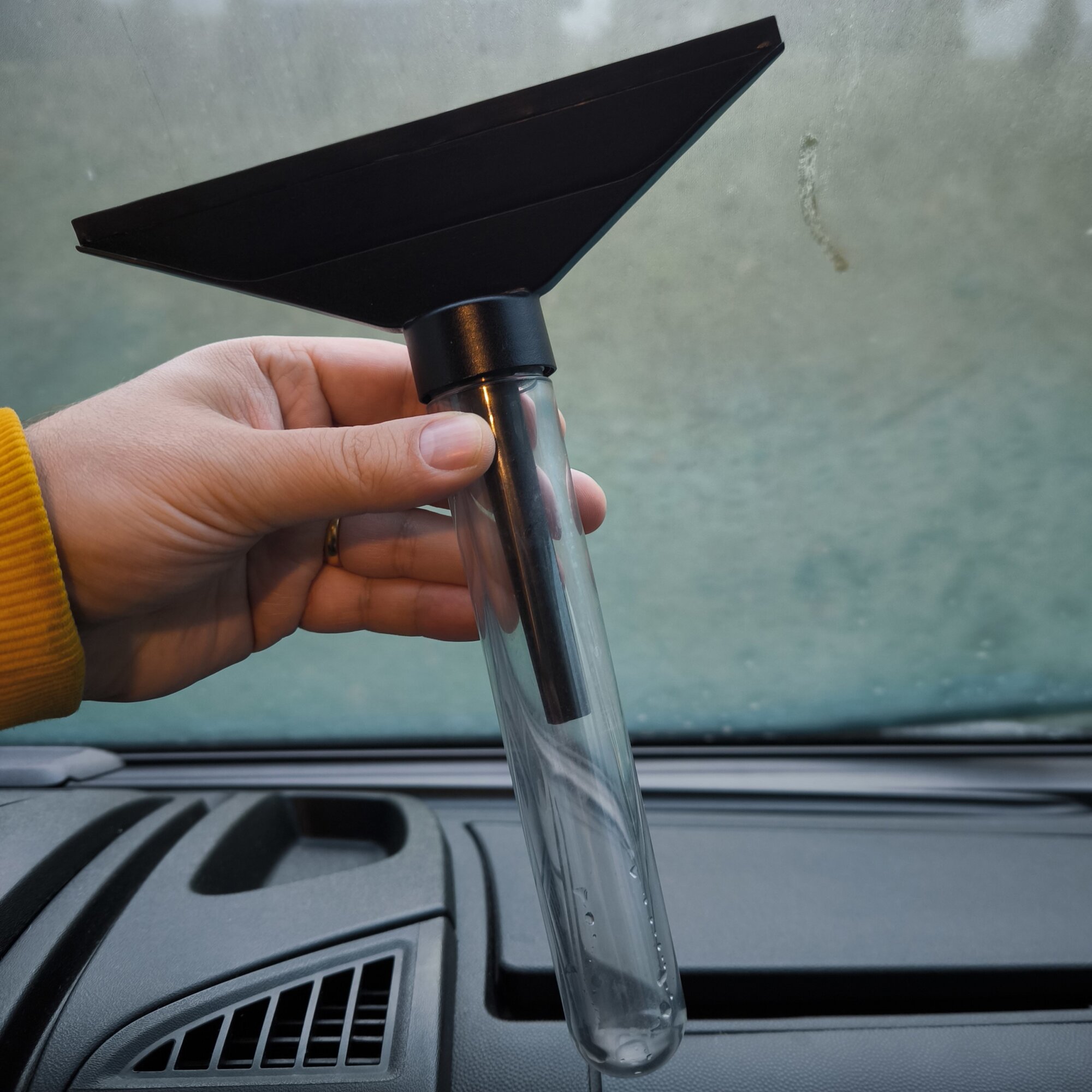 Foggy windscreen? The Camperflower windscreen squeegee is the new, space-saving solution for fogged-up camper windscreens!