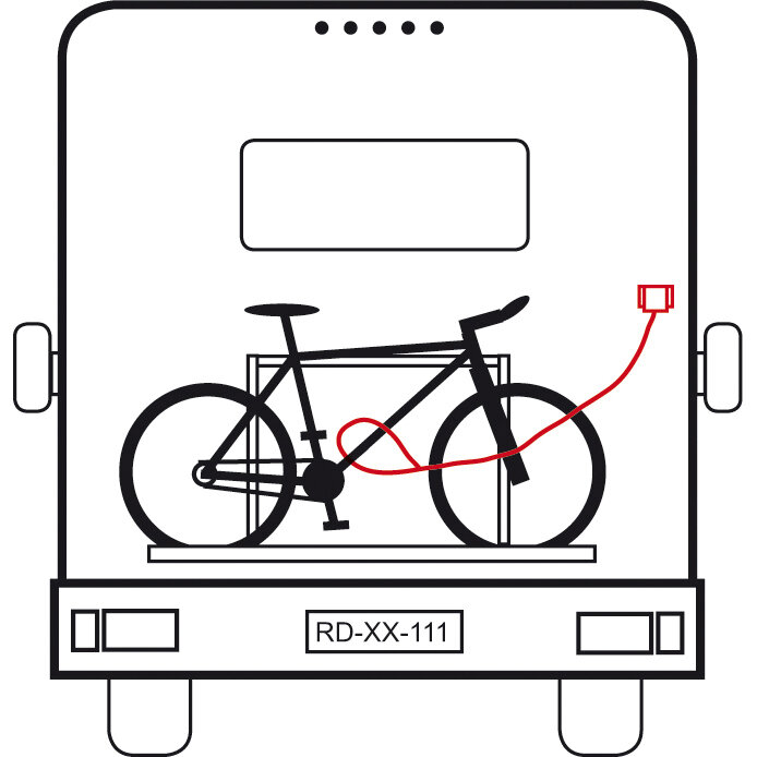 For securing mobile goods outside of your vehicle (e.g. bicycles, mobile satellite antennas, camping furniture, etc.). Sets off an alarm if severed or sabotaged. Voltage supply 3 V (CR2032), frequency 868.35 MHz, range approx. 75 m.