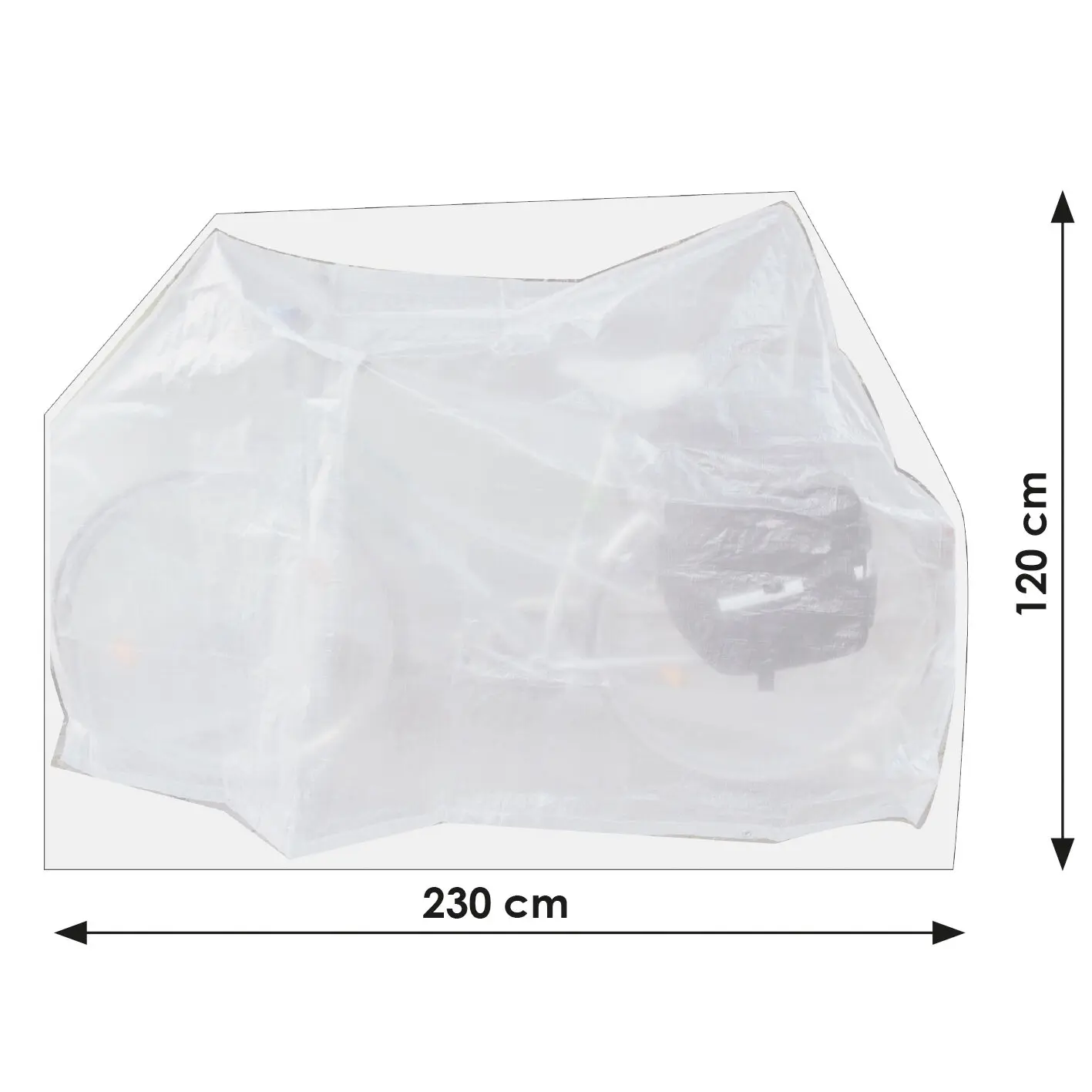 Die wetterfeste Hülle besteht aus Polyethylengewebe und schützt dein Fahrrad vor allen Witterungseinflüssen und Staub. Die Struktur dieses Materials garantiert dir eine hohe Flexibilität bei gleichzeitig höchster Belastung. Mit praktischen Ösen kannst du die Hülle leicht befestigen. Die Schutzhülle ist für den Gebrauch von 15 °C bis 40 °C bei trockener Lagerung geeignet. Sie ist UV-stabilisiert, transparent, reißfest und wetterbeständig.