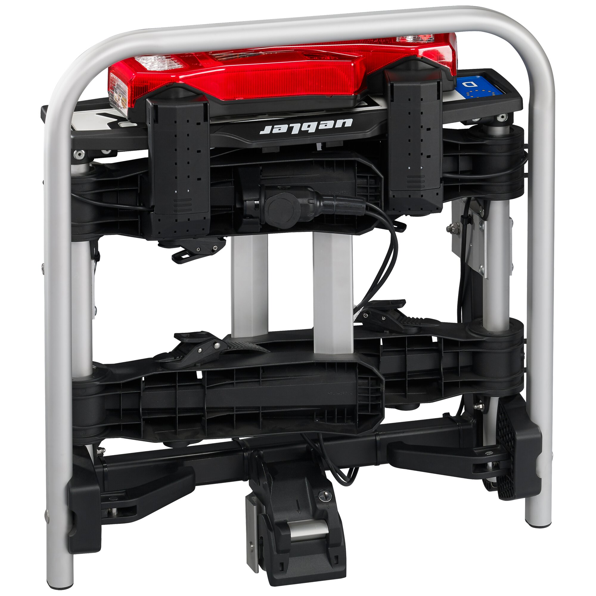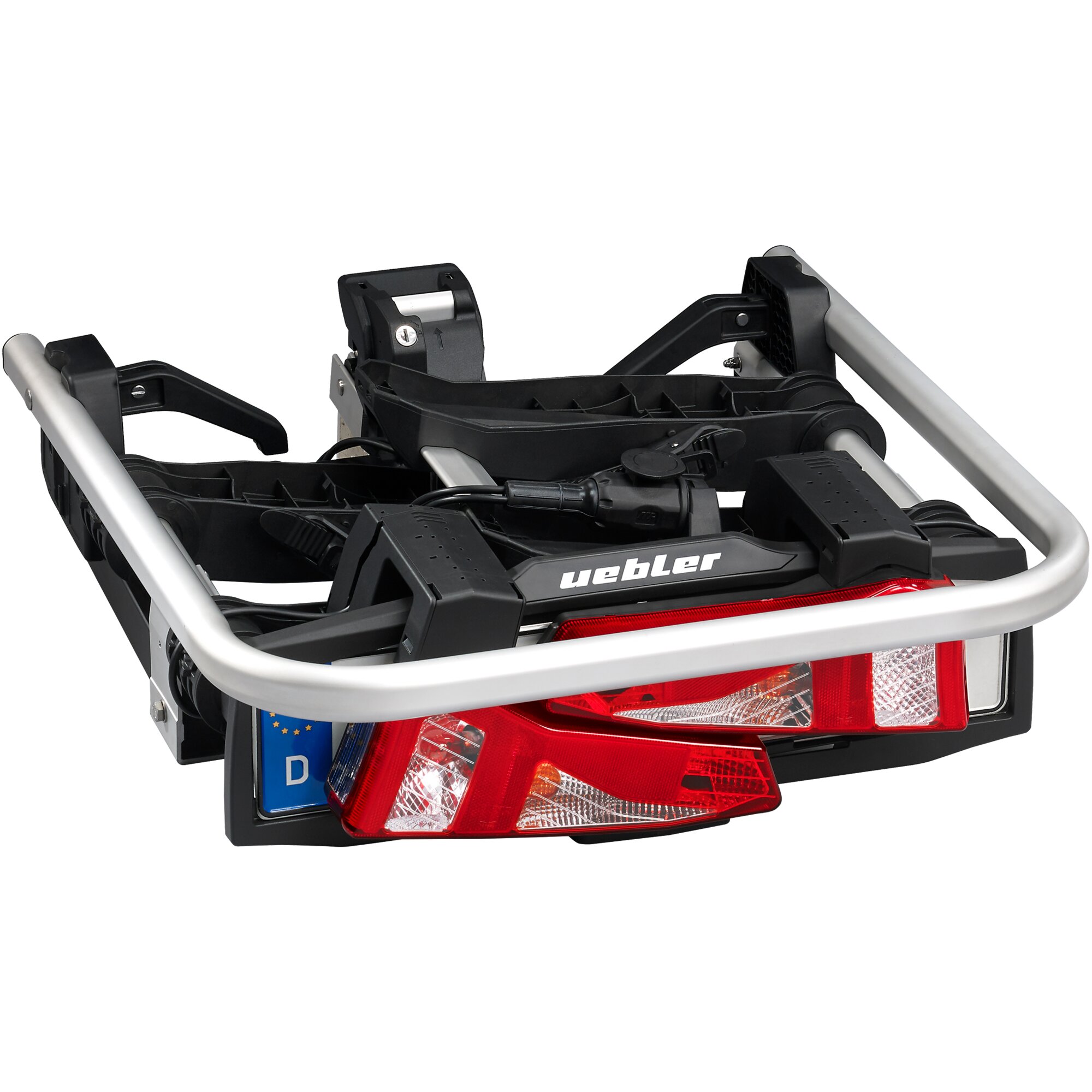 Erhältlich mit vergrößertem Abklappwinkel (90°). Erlaubt bei Fahrzeugen mit großer Heckklappe den Zugang zum Kofferraum. Extrabreite Radschienen für Reifen bis 4,5". Inkl. 6 Schlüsseln für die abschließbaren Abstandshalter mit Zahnband für alle Rahmendurchmesser.