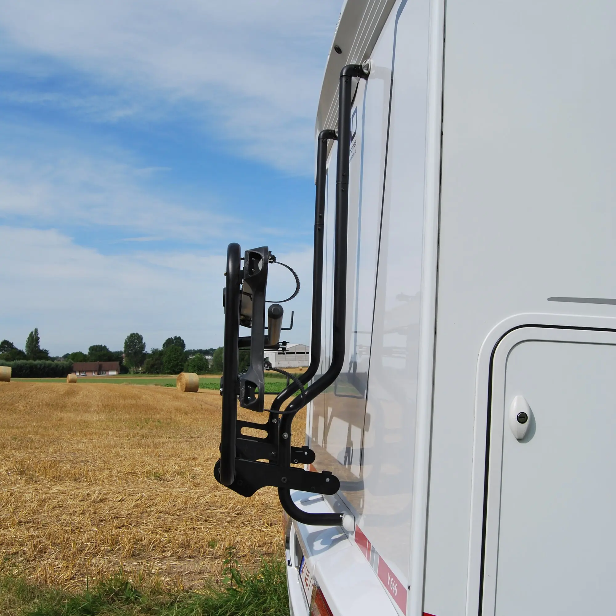 Der Bike Glide wurde speziell für Wohnmobile entwickelt, um den Transport von E-Bikes und schweren Fahrrädern zu vereinfachen. Mit der integrierten Gasdruckfeder laden Sie Ihre Fahrräder kraftsparend auf die Plattform, die sich bis auf Bodenhöhe absenken lässt. Der Träger überbrückt eine Höhe von bis zu 1,1 m. Aus robustem, KTL-beschichtetem Material. Lässt sich bei Nichtgebrauch platzsparend zusammenklappen.