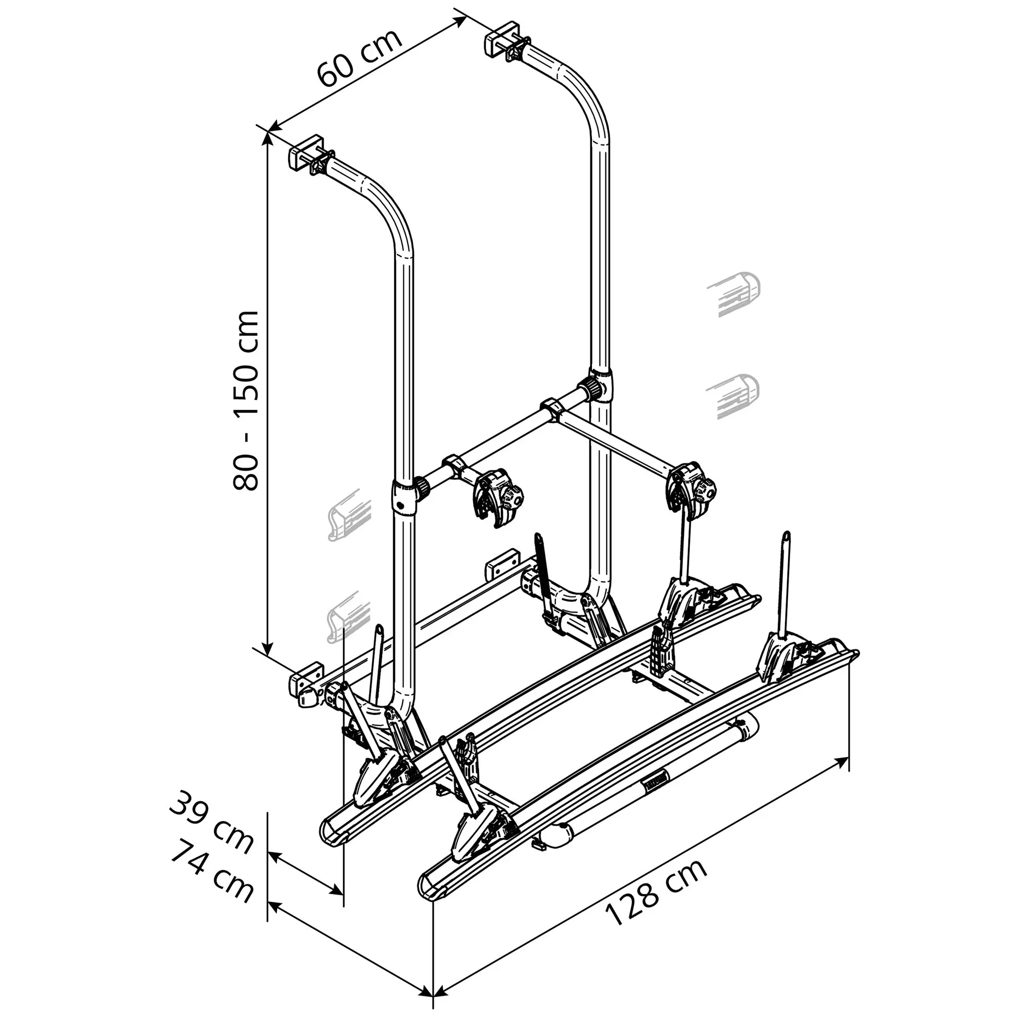 | Lieferumfang Fahrradträger: | 2 Abstandshalter, 2 Fahrradschienen |