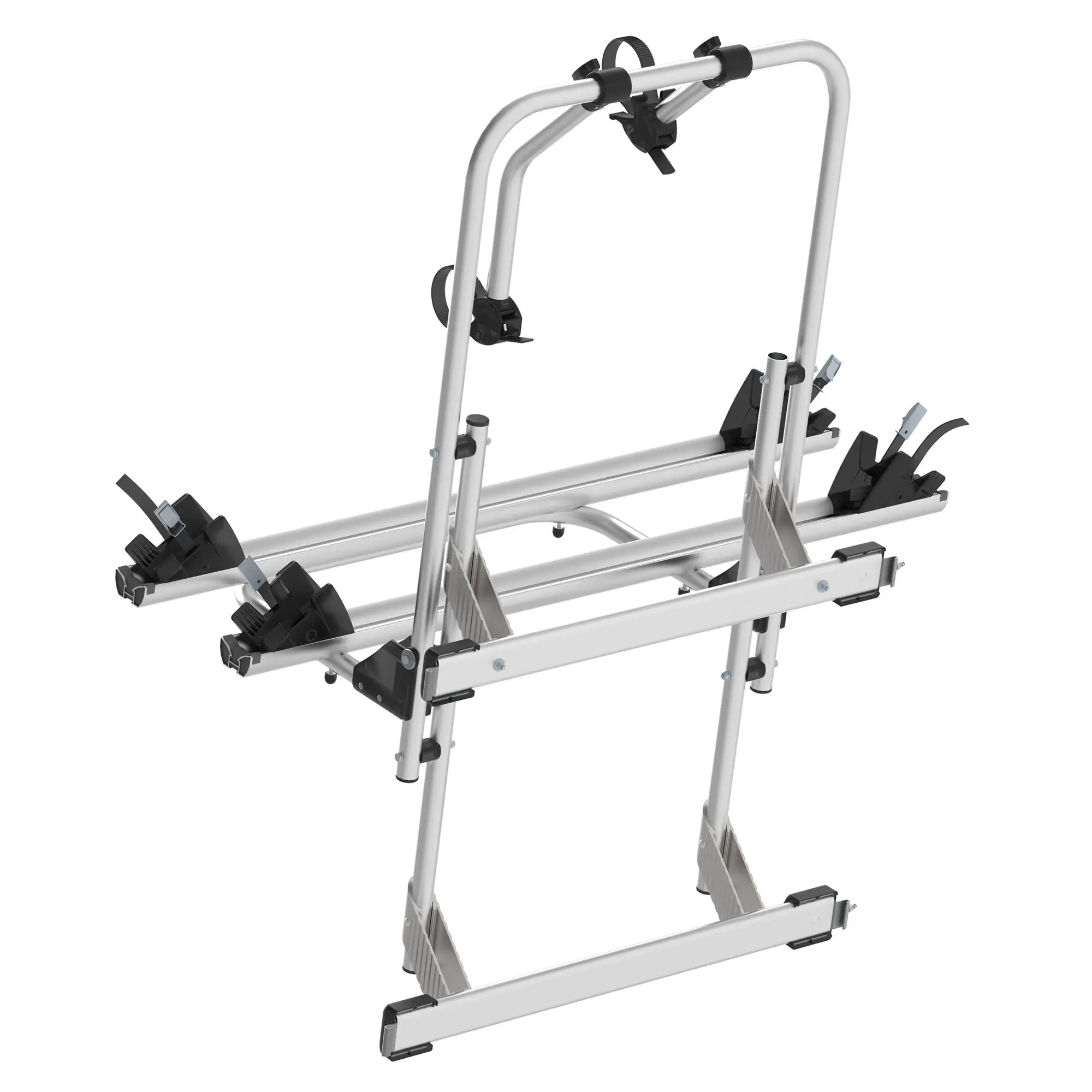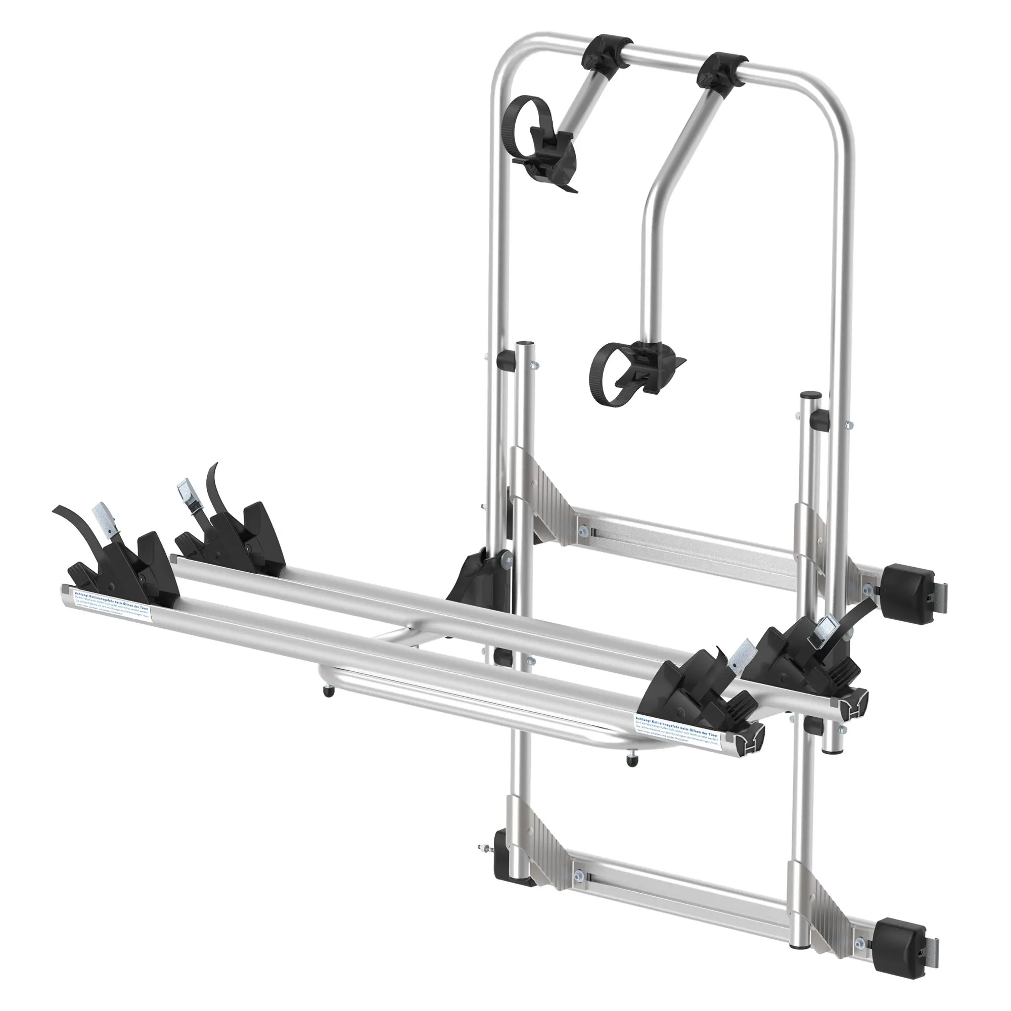 Vormontierter Fahrradträger für die rechte Hecktür. Der Grundrahmen besteht aus eloxiertem Aluminiumrohr. Nicht für 270°-Türen geeignet!