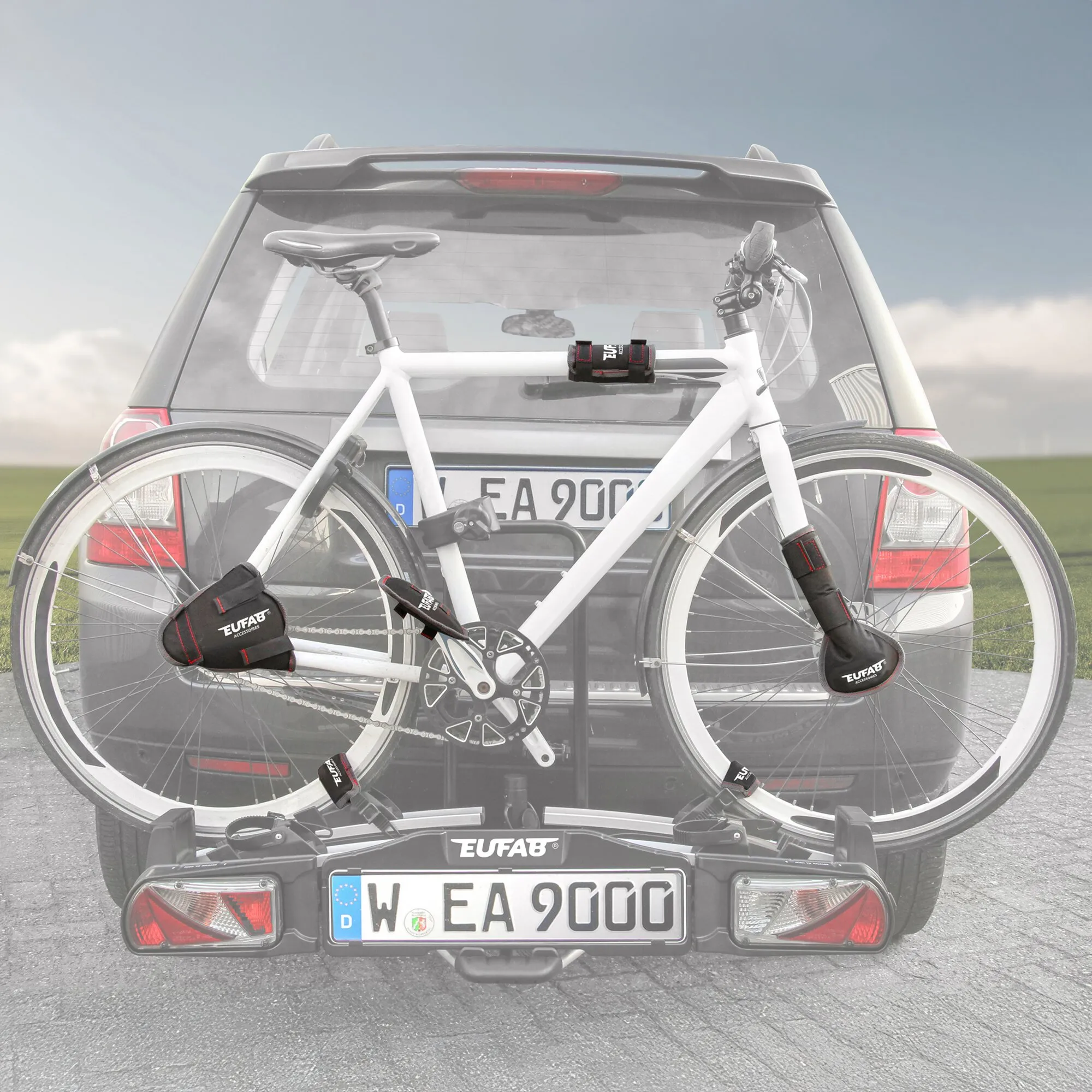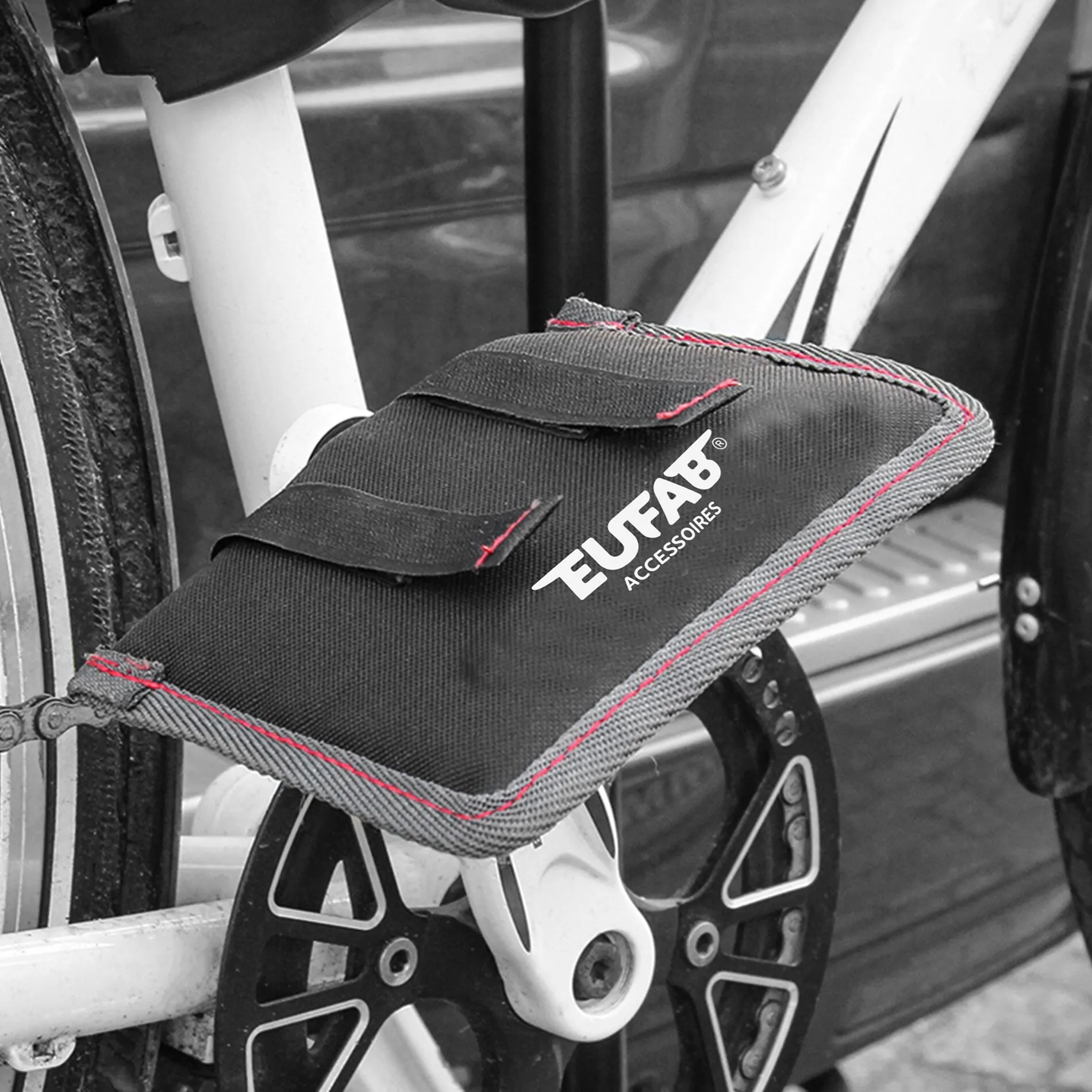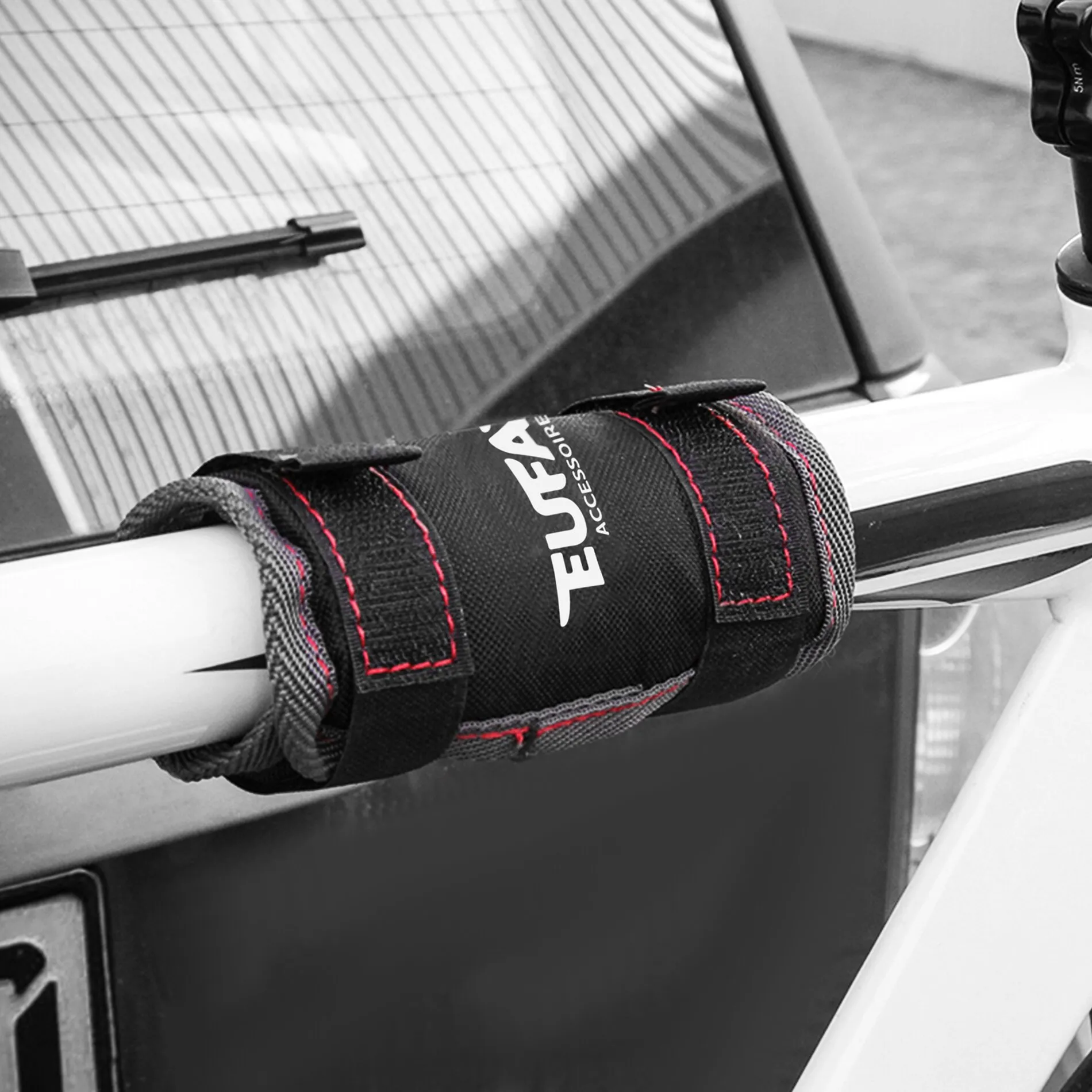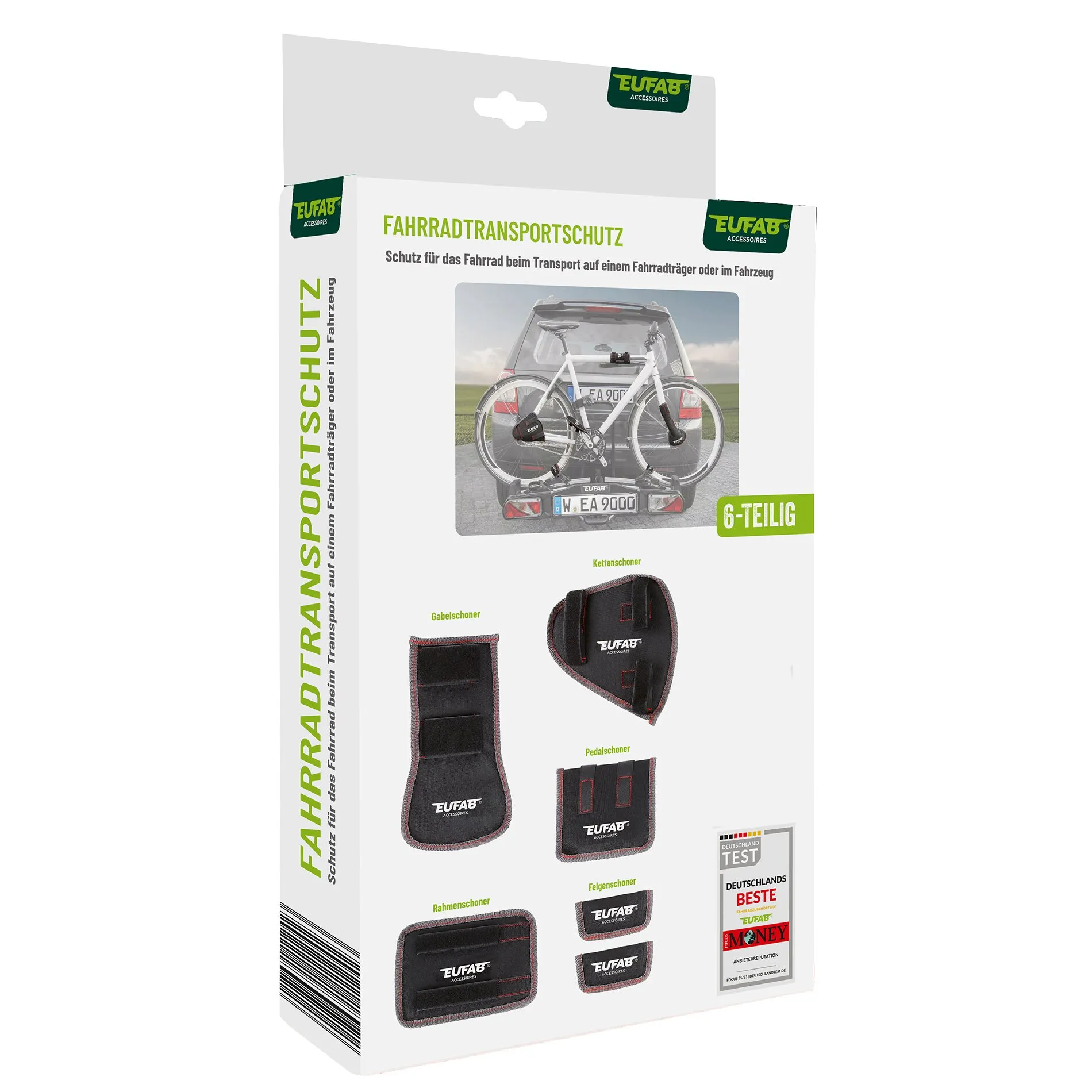 Schützt Ihr Fahrrad beim Transport auf einem Fahrradträger oder im Fahrzeug. Befestigung mit stabilen Klettverschlüssen. Robuste und abwaschbare Außenseite. Gepolsterte Innenseite. Mit praktischer Tasche zur Aufbewahrung. Obermaterial ist 100 % Polyester (Oxford 600D) mit PVC-Beschichtung.