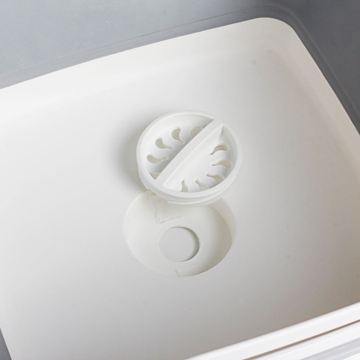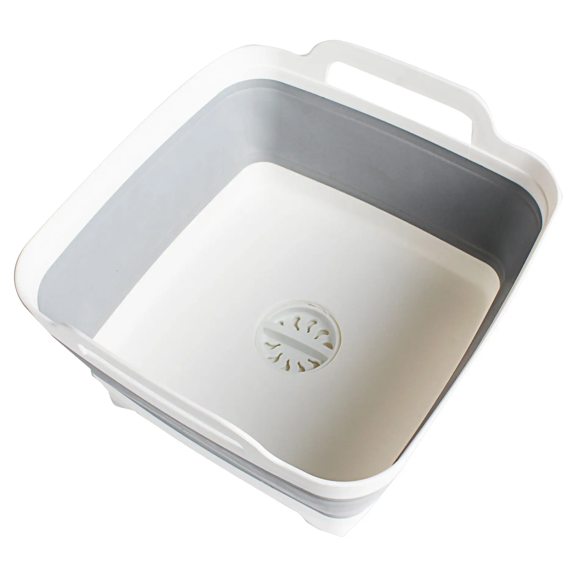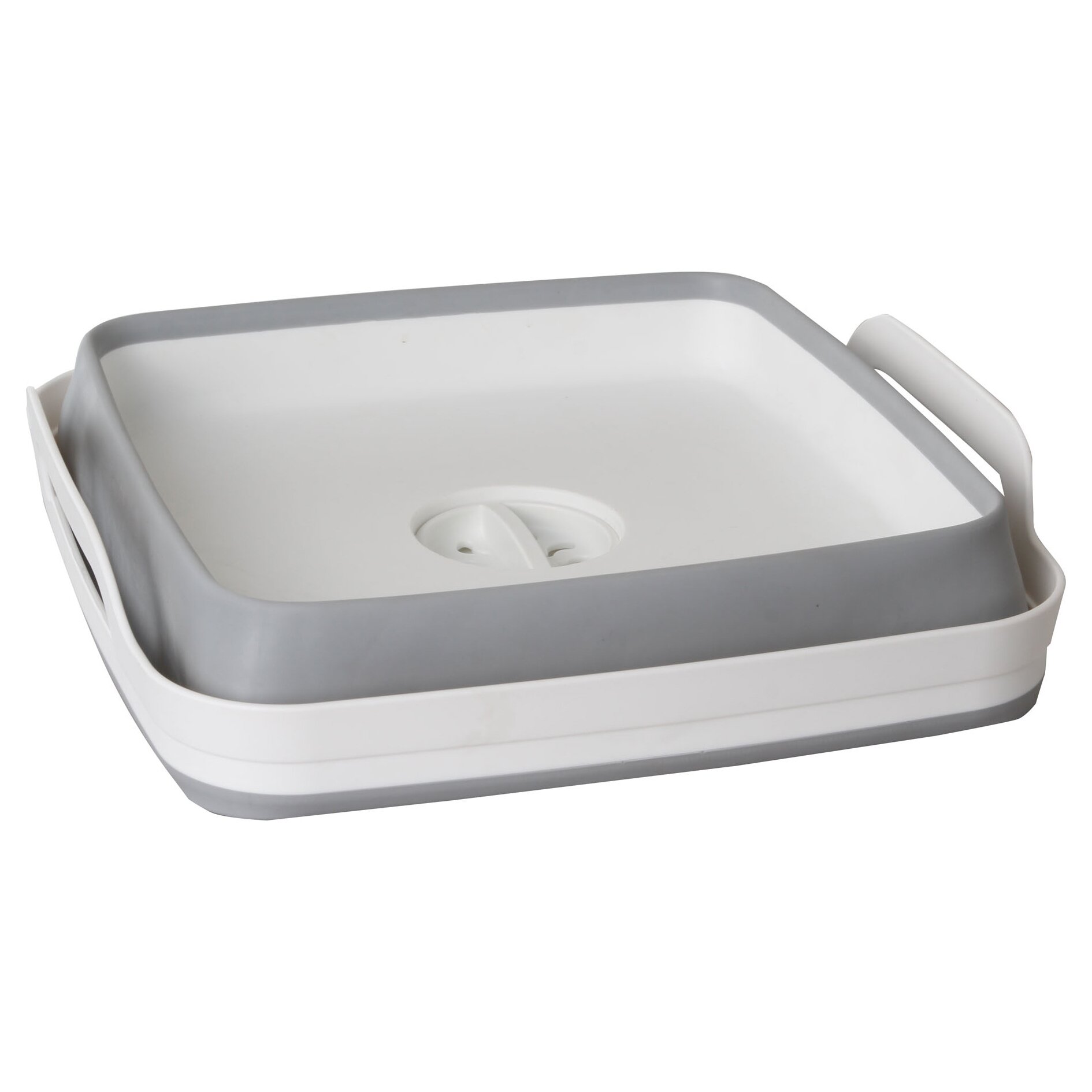 Faltbare Waschschüssel aus robustem Kunststoff mit integrierten Tragegriffen und verschließbarem Bodenablauf. Dank des Fold-Away-Systems lässt sich die Schüssel sehr kompakt falten und platzsparend transportieren.