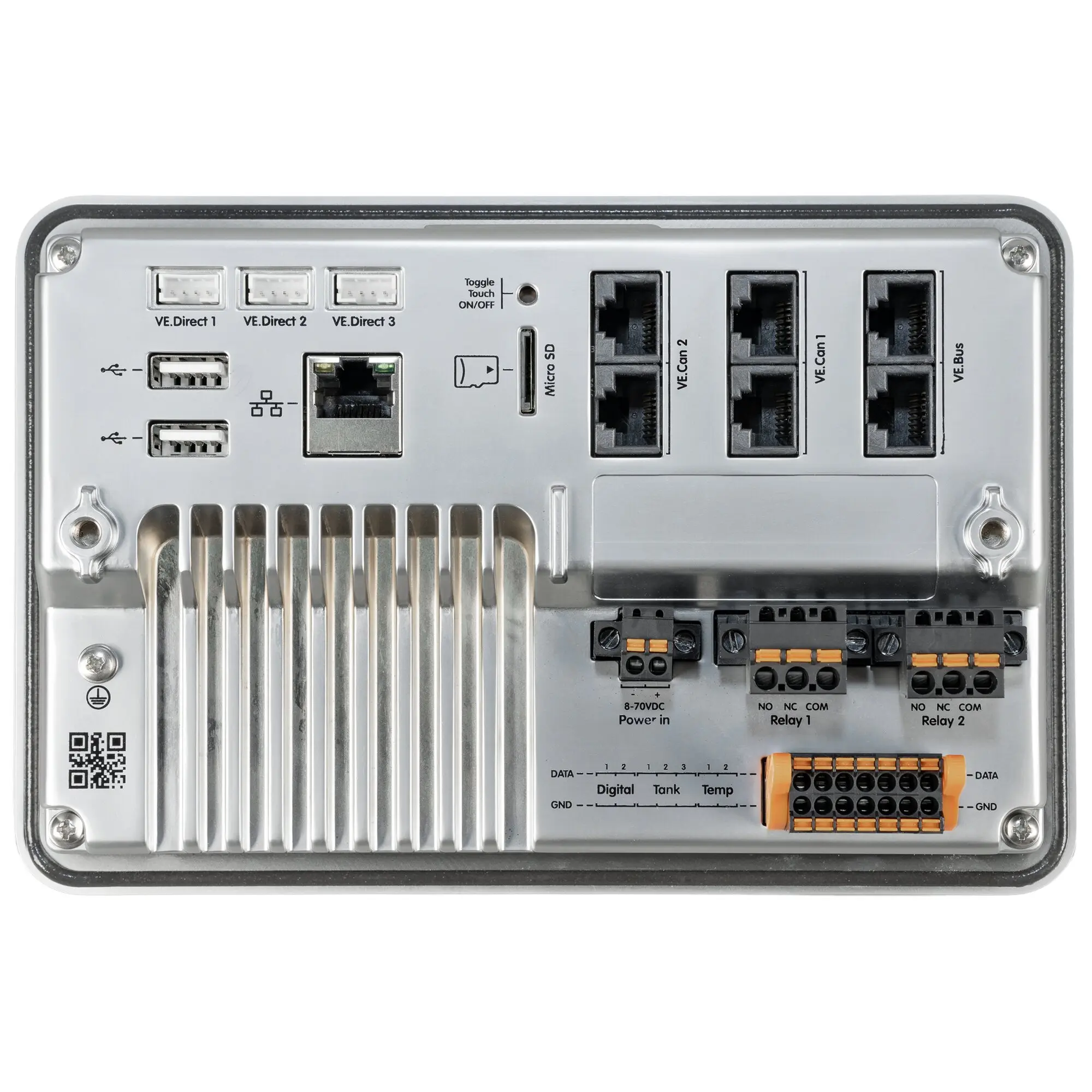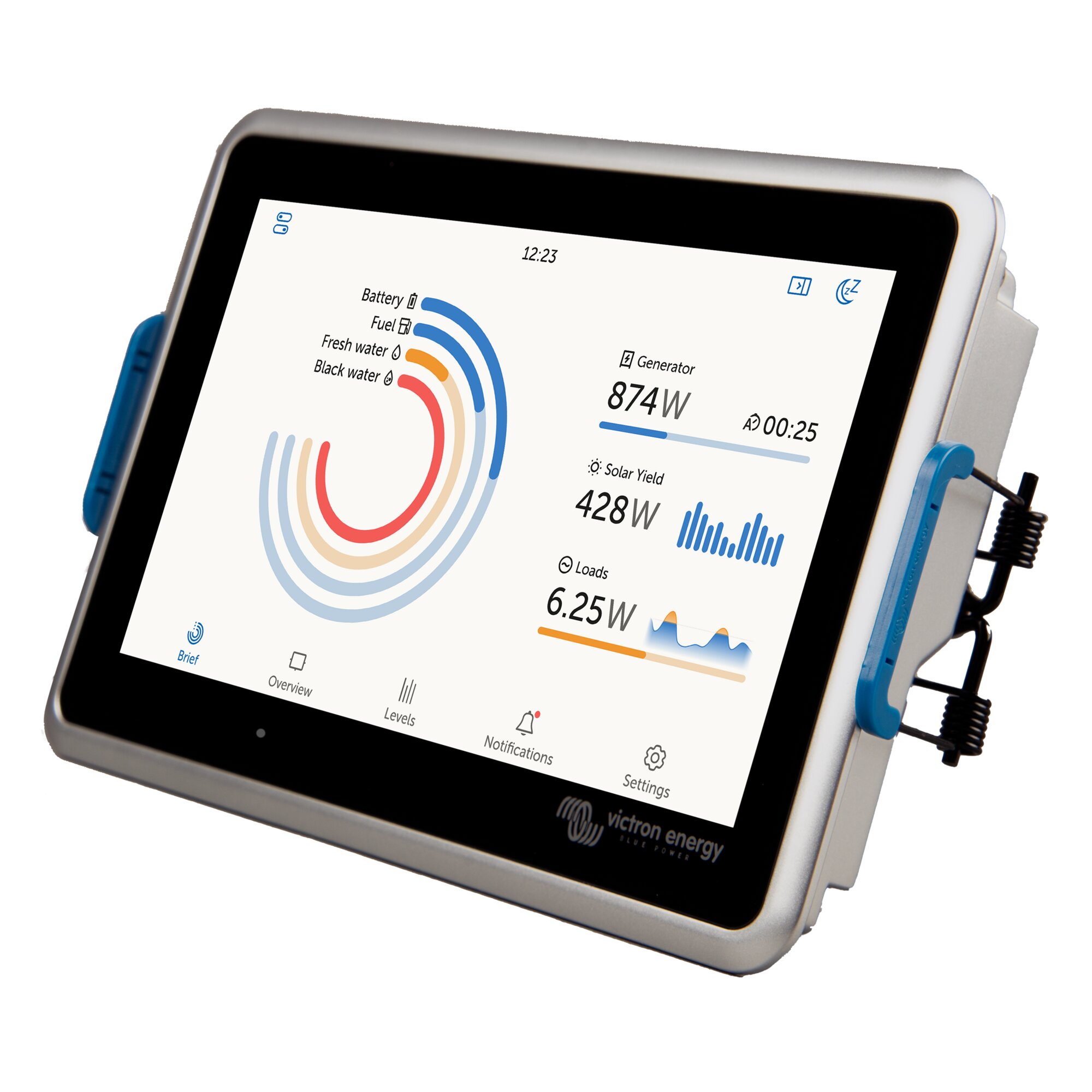 Das Ekrano GX ist die nächste Generation der GX-Produktfamilie. Mit seinen zahlreichen Anschlüssen und Schnittstellen sowie einem eingebauten 7-Zoll-Touchscreen-Display ist es das bisher leistungsstärkste GX-Gerät. Im Grunde vereint es das Cerbo GX mit dem Touch 70 GX in einem Gerät, zusätzlich bestückt mit einem leistungsstärkeren Prozessor und weiteren Features.