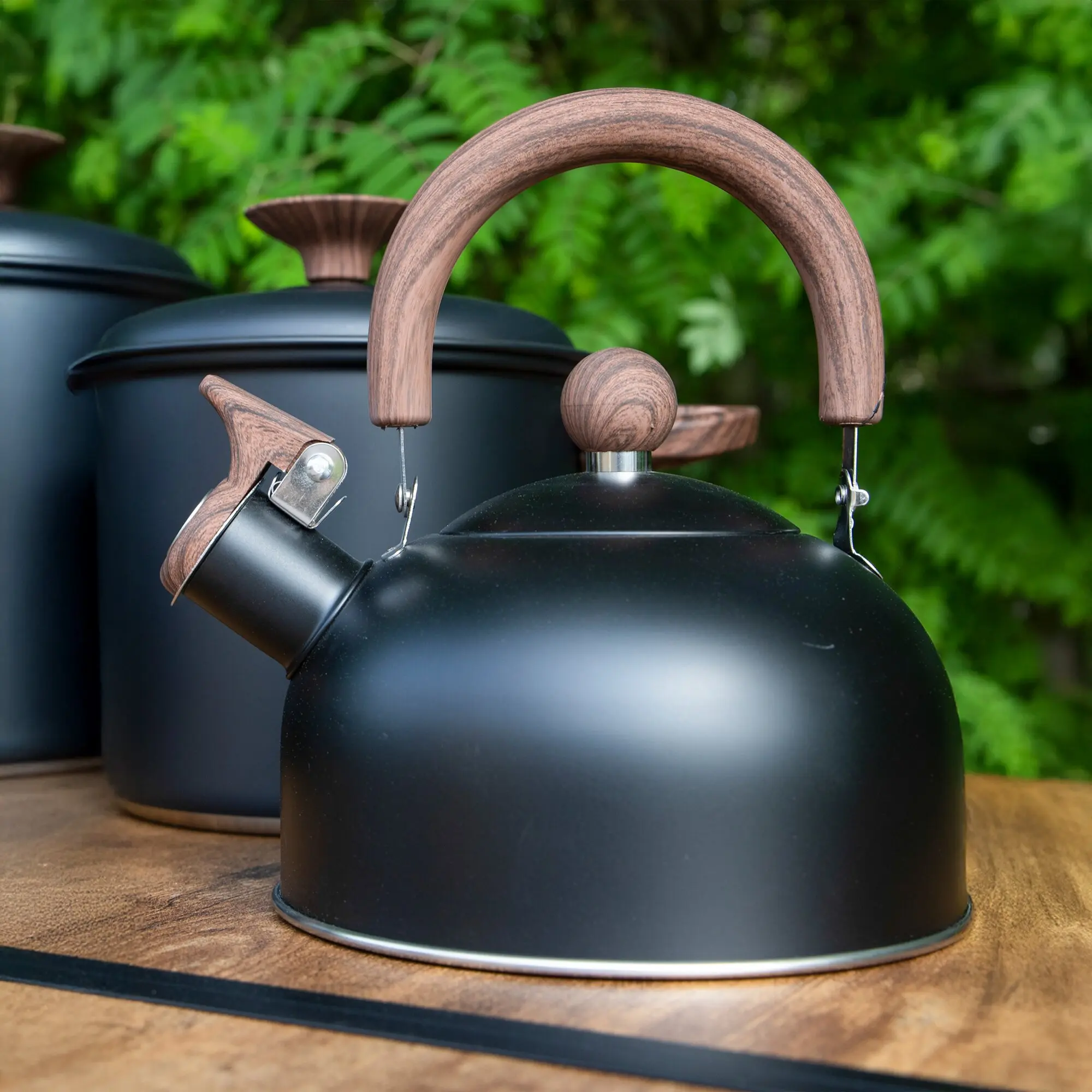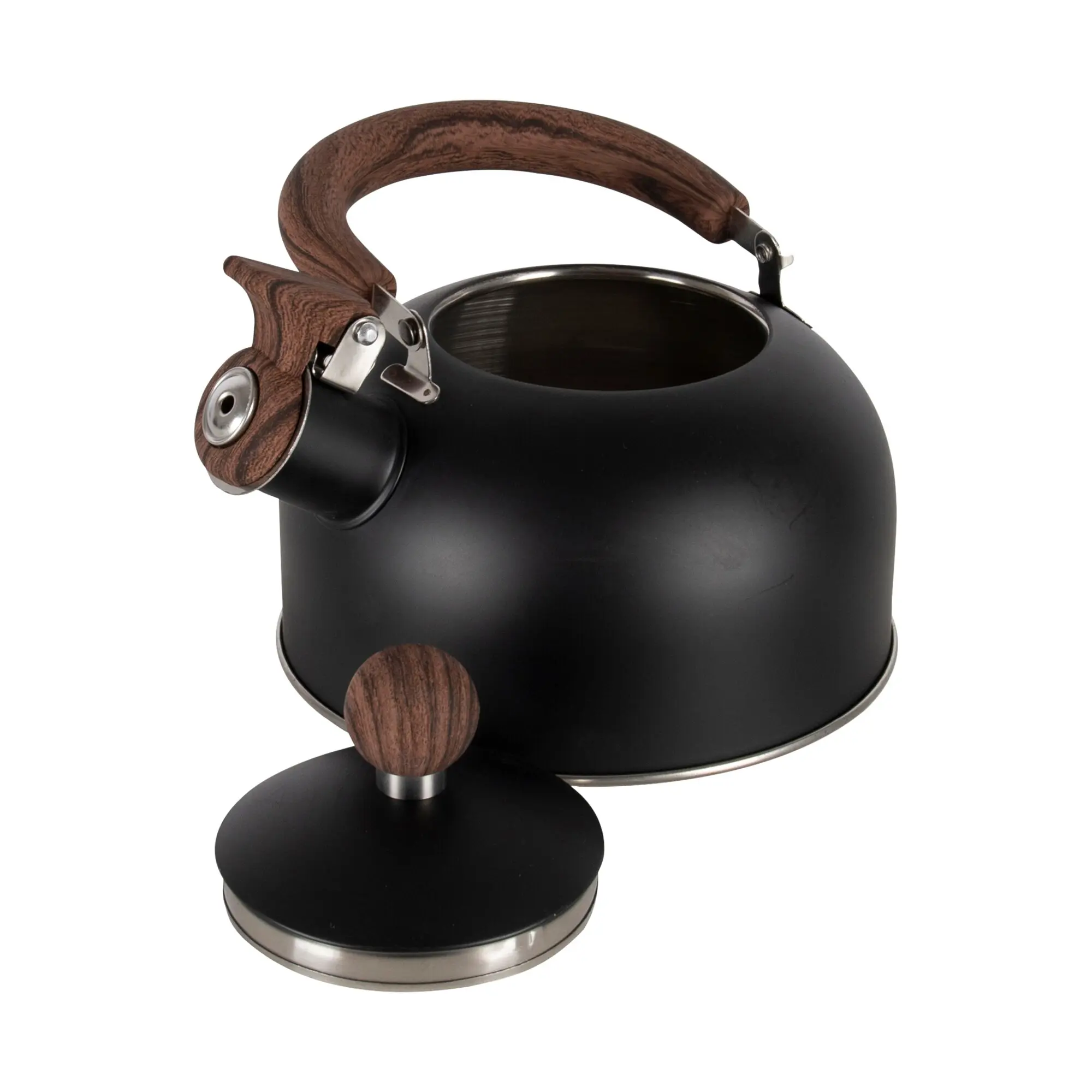 Der Flötenkessel Pettygrove aus der Industrial-Kollektion besteht aus rostfreiem Edelstahl und kombiniert Metall mit Holzoptik für ein stilvolles Design. Der extrastabile Boden sorgt für zuverlässige Wärmeleitung. Besonders praktisch: Deckel und Griff sind einklappbar, dadurch lässt sich der Teekessel sehr platzsparend verstauen – ideal für unterwegs.