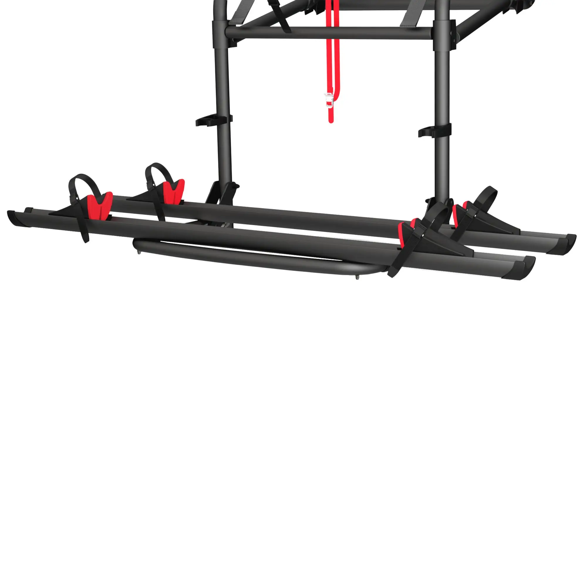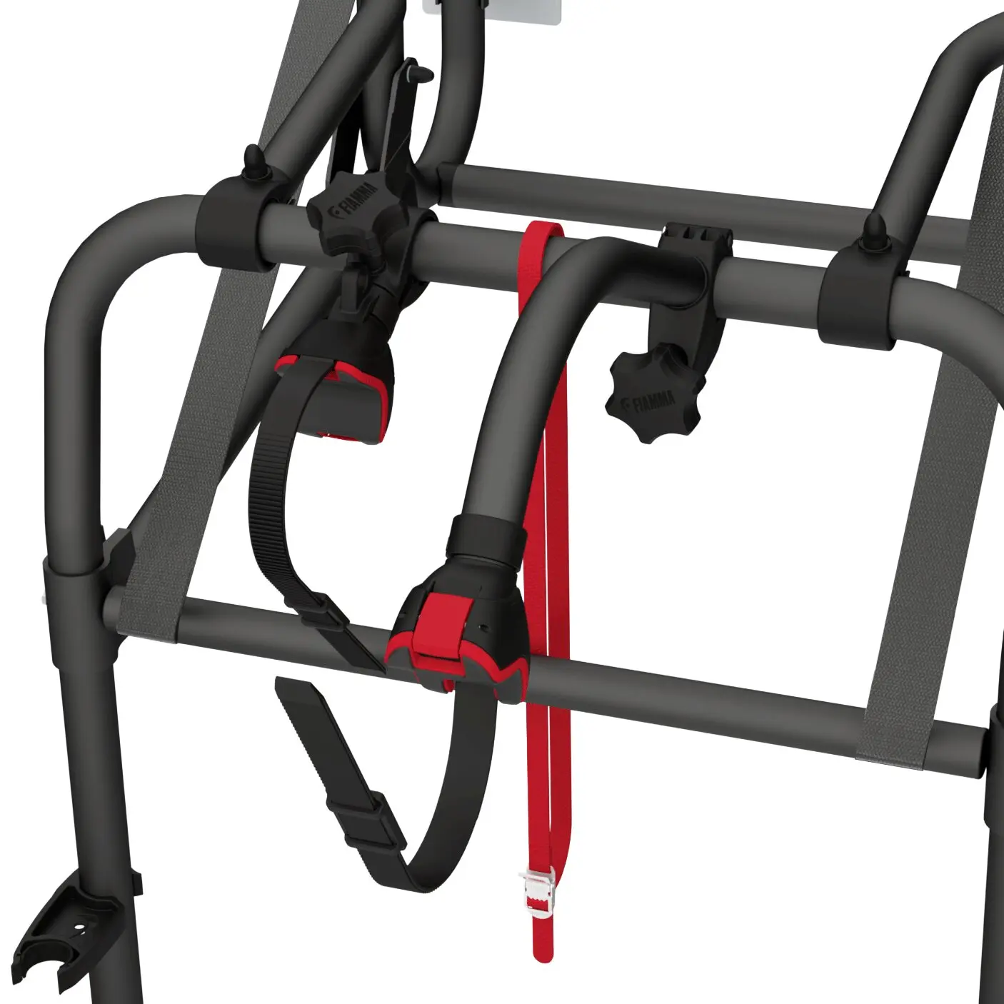 Der Fahrradträger Lift lässt sich bis zu 77 cm absenken, um das Be- und Entladen der Räder zu erleichtern. Ausgestattet mit breiten Gurten aus verstärktem Gewebe, die bis zu 60 kg Gesamtgewicht tragen, und einem Sicherheitssystem, das ein versehentliches Lösen während der Fahrt verhindert.