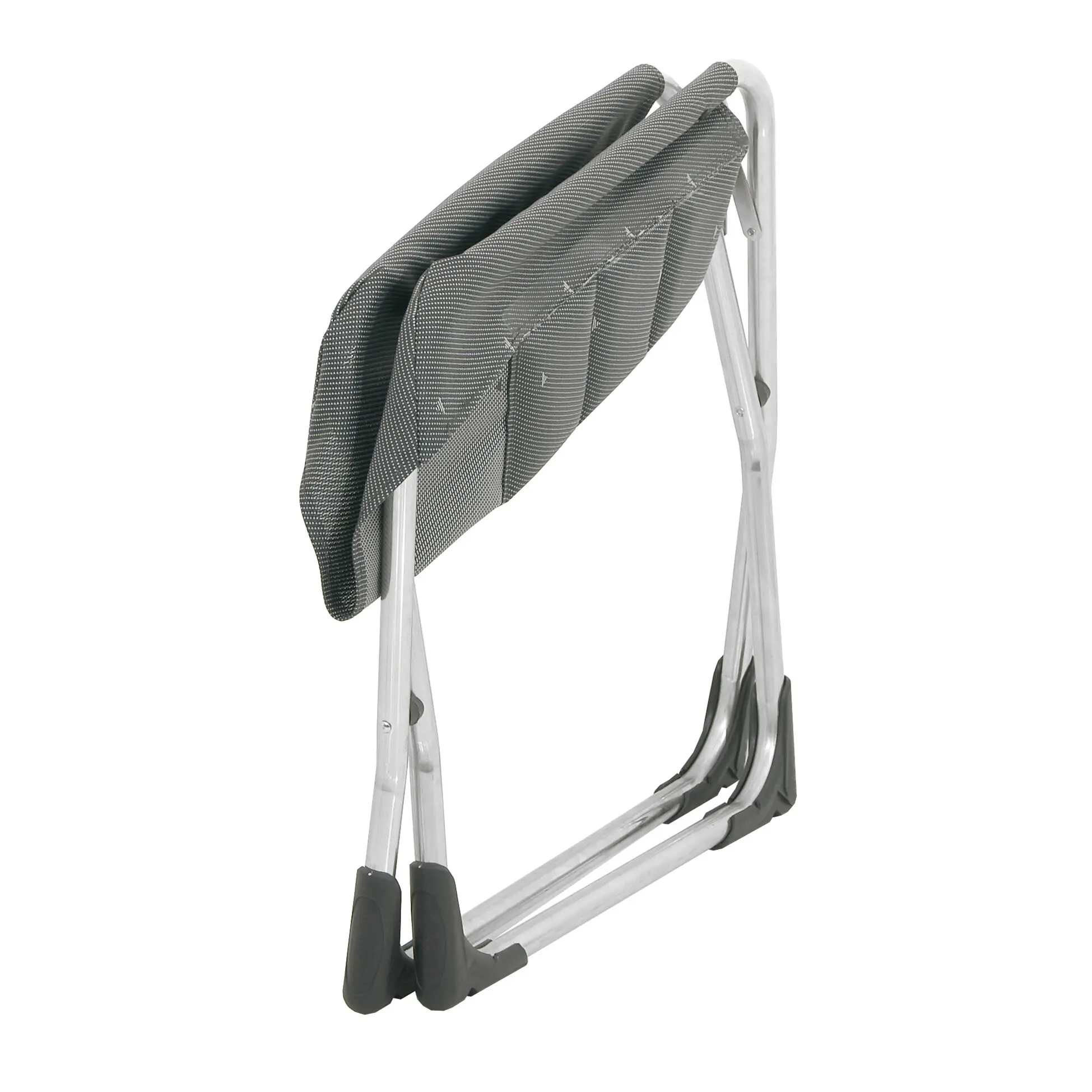 Eloxiertes Aluminiumgestänge und der Deluxe Multifiber-Stoff machen die Fußauflage zum idealen Begleiter. Auch als Hocker benutzbar.