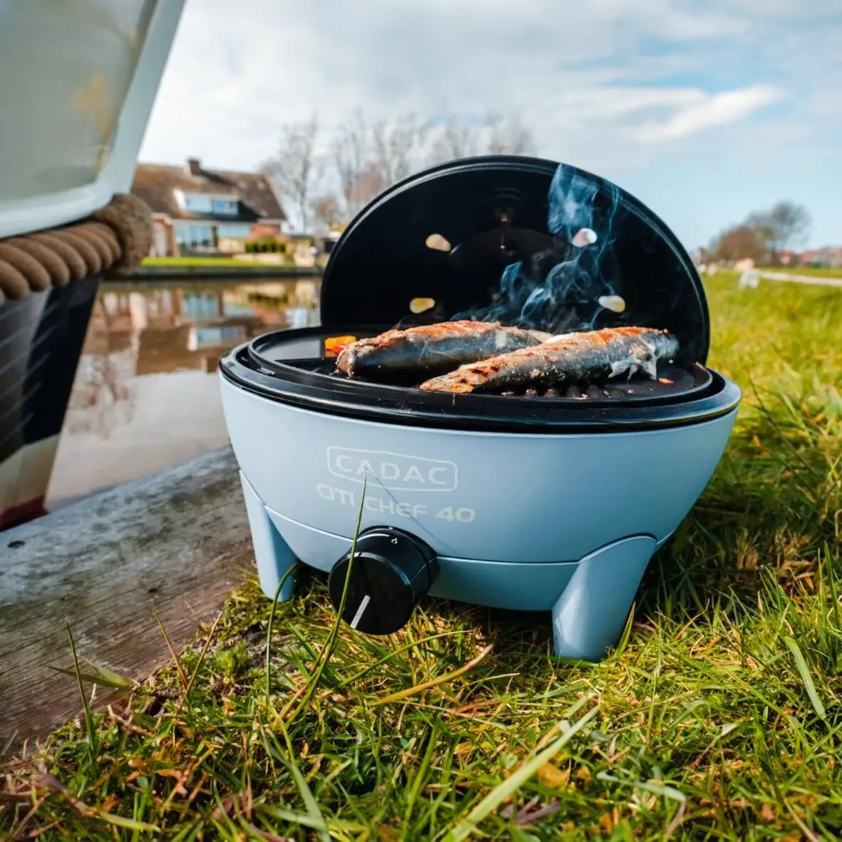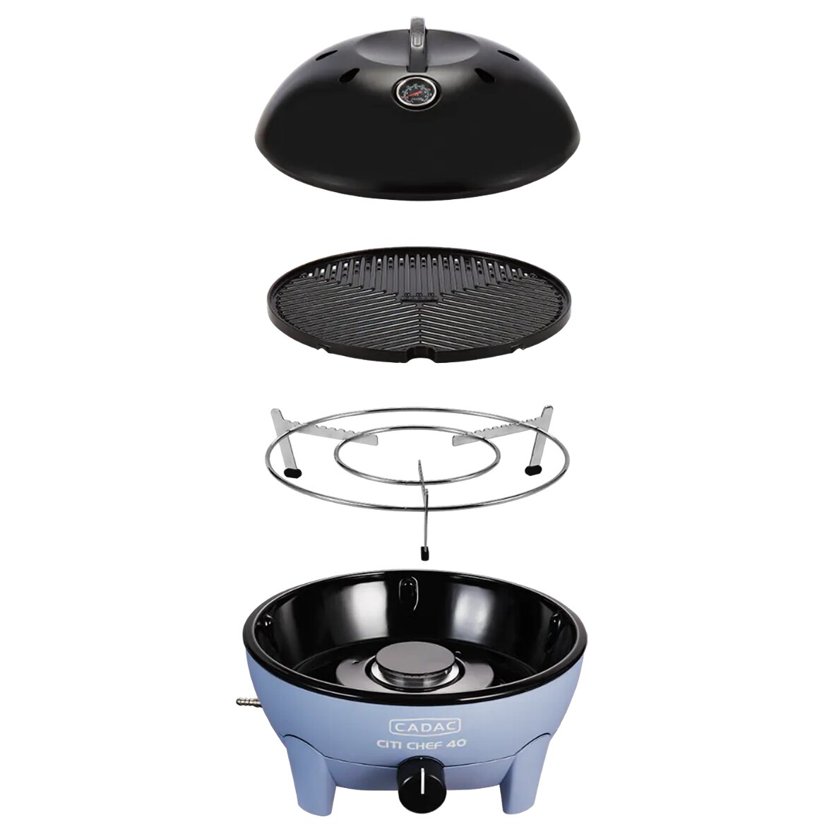 Der robuste, kompakte und tragbare Grill kann auf dem Tisch genutzt werden. Er ist ausgestattet mit einem GreenGrill-keramikbeschichteten Grillrost aus Aluminium mit integriertem Deflektor, um die Wärme ideal zu verteilen. Die Fettpfanne passt in die äußere Brennerpfanne und lässt sich leicht entnehmen und reinigen. Ein verchromter Topfständer ist inklusive! So können Sie Töpfe, die CADAC Paellapfanne oder den Pizzastein nutzen. Lieferung ohne Schlauch und Druckminderer.