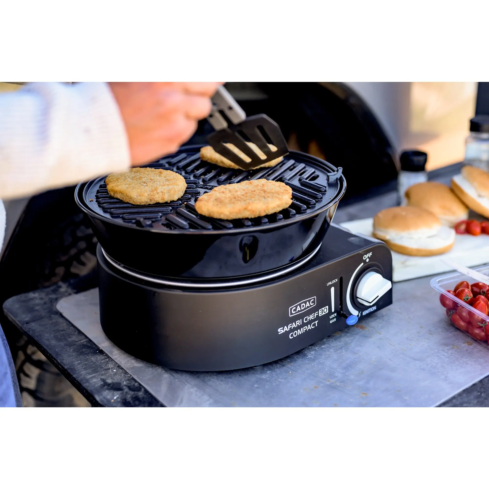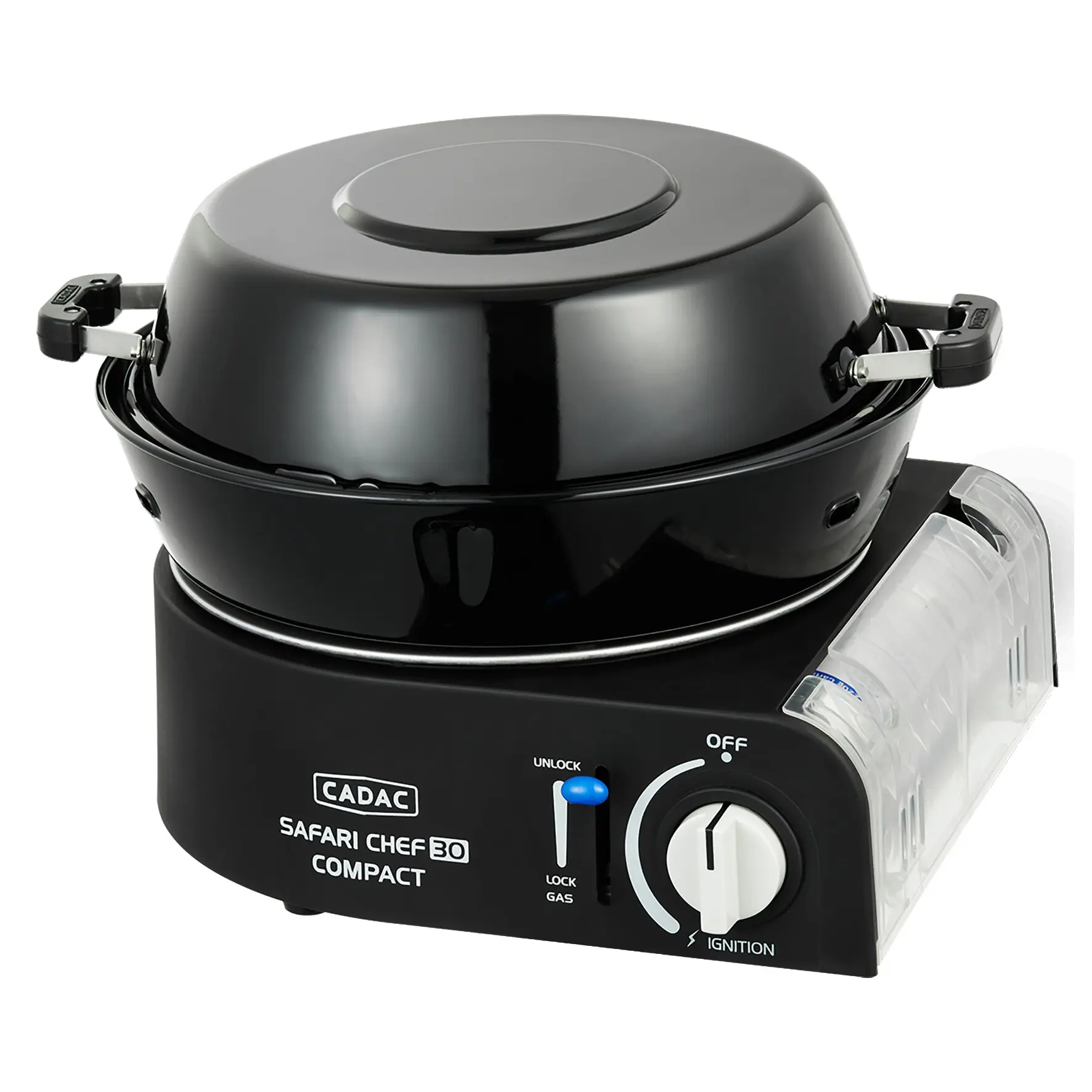 Der Safari Chef 30 Compact ist ein ultrakompakter, leichter Gasgrill. Er arbeitet direkt mit einer 227 g Bajonettkartusche. Einfach die Gaskartusche in das Gerät einsetzen, einklicken und schon können Sie mit dem Kochen oder Grillen beginnen. Ein ideales Gerät für Outdoor-Aktivitäten und Campingurlaube. Trotz seiner geringen Größe ist der Safari Chef 30 Compact äußerst vielseitig, da er über verschiedene Kochflächen verfügt: einen Topfständer, eine Grillplatte, einen Grillrost und einen Deckel, der auch als Topf genutzt werden kann. Auf dem Topfständer kann problemlos ein Topf mit Suppe oder Nudeln gekocht werden. Der Grillrost und die Grillplatte sind mit der GreenGrill-Beschichtung von CADAC versehen und eignen sich perfekt zum Braten und Grillen von Fleisch, Fisch und Gemüse. Der Deckel kann auch als (Suppen-)Topf verwendet werden und ist somit multifunktional. Die Fettpfanne fängt Kochrückstände auf, dient aber auch als Windschutz, damit der Brenner nicht ausgeht. Eine robuste Trage-/Aufbewahrungstasche ist im Lieferumfang enthalten, sodass der Safari Chef 30 Compact problemlos überallhin mitgenommen werden kann.