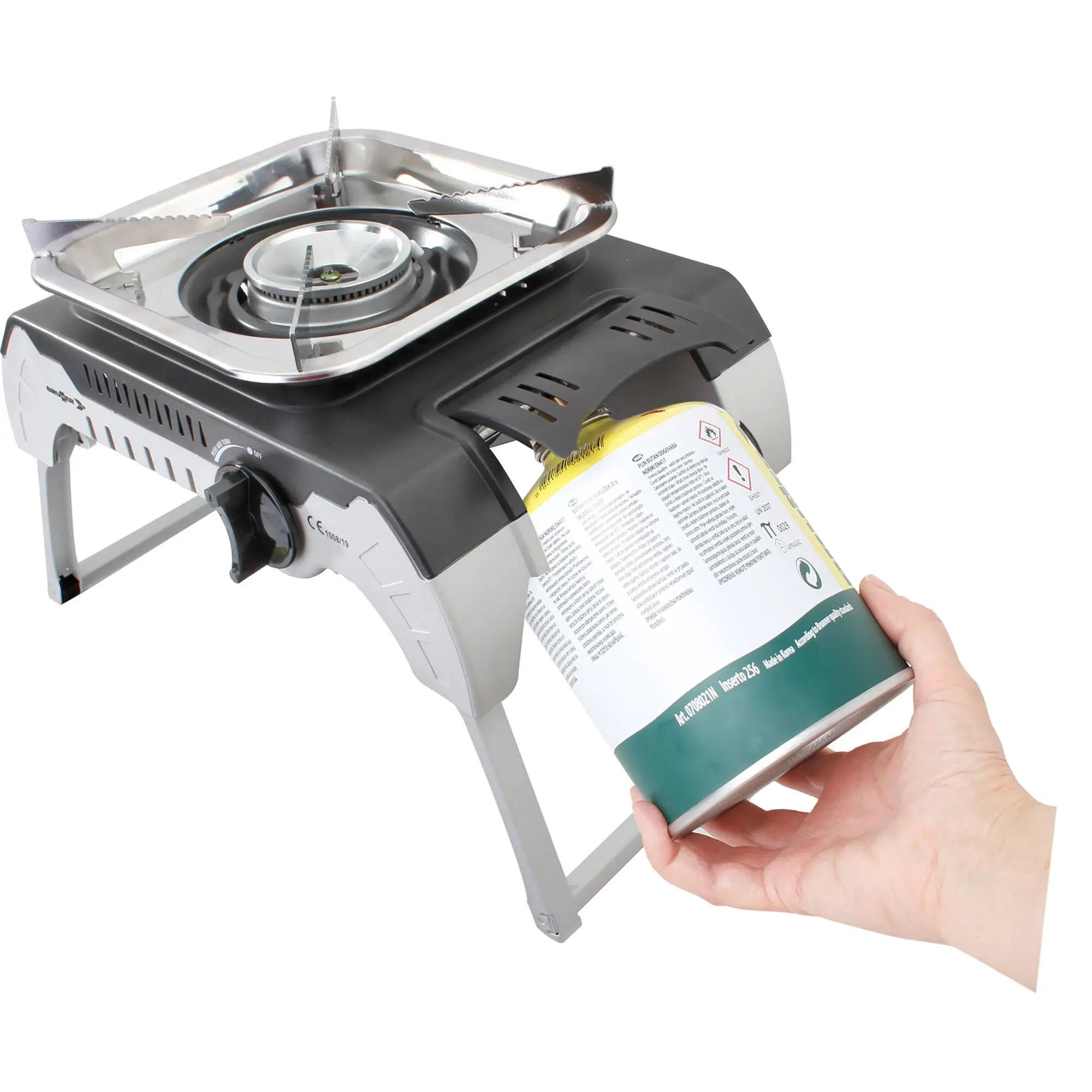 Neue tragbare Gaskocherlinie mit klappbaren Standbeinen aus Edelstahl. Betrieb mittels 450 g Gewindekartuschen. Leicht, kompakt und einfach zu transportieren - ideal zum Campen oder Picknicken. Qualitativ hochwertige Konstruktion. Inklusive praktischem Kunststoffkoffer für den Transport. In Einzel- oder Doppelausführung erhältlich.