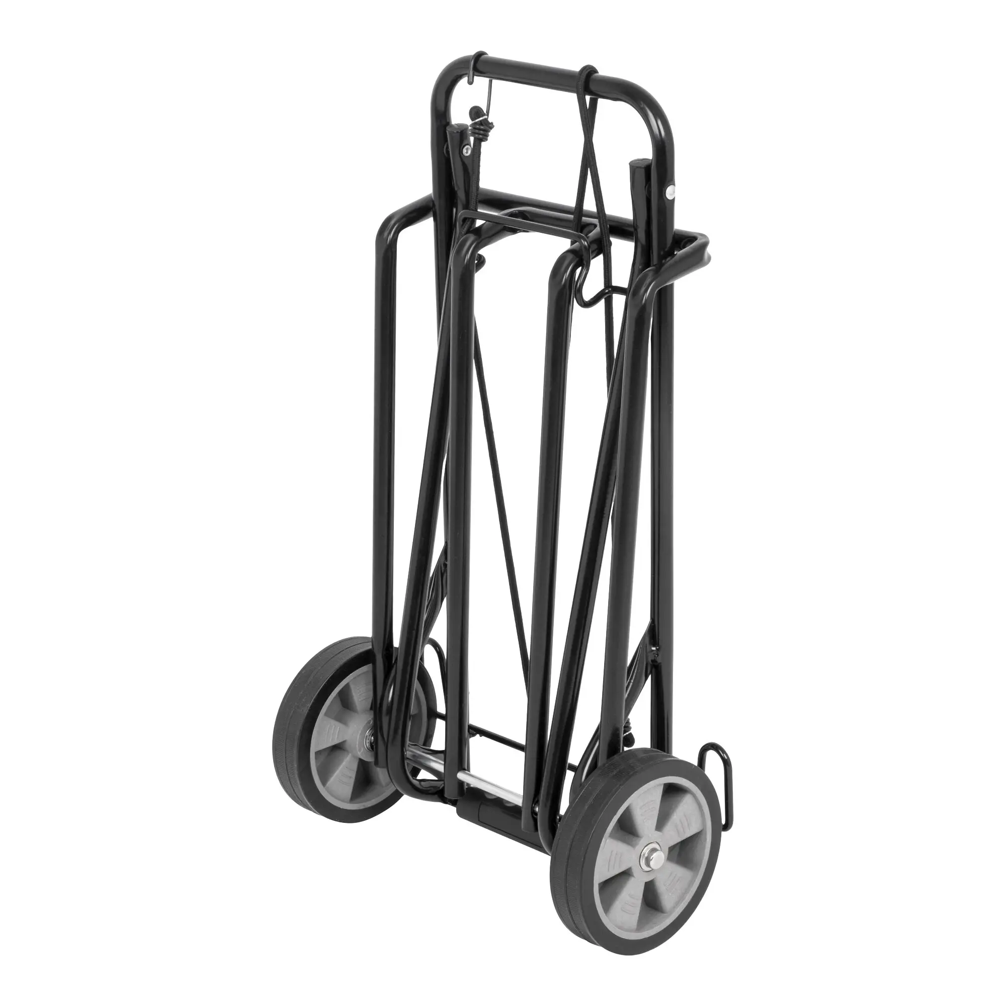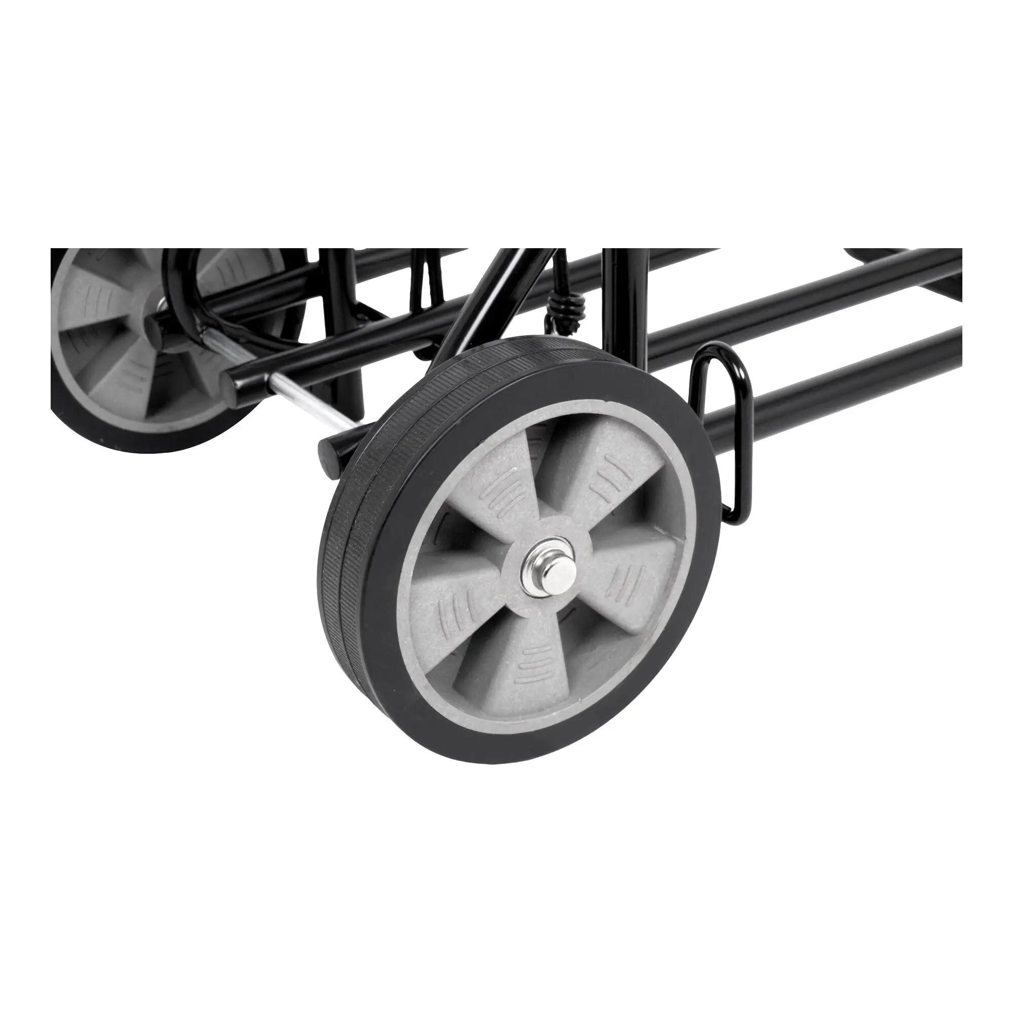 Bequem zu bewegen durch 14,5 cm große Räder und sicheren Kunststoffhandgriff. Transportsicherung durch Gummispannband. Material: lackiertes Stahlrohr