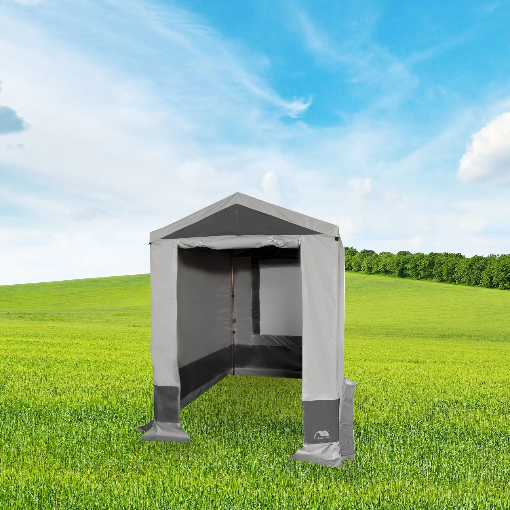 Praktisches Gerätezelt für die verschiedensten Einsatzmöglichkeiten. Das Gerätezelt Equipo bietet dir viel Staufläche und ist kinderleicht aufzubauen. Den Eingang in der Vorderwand kannst du nach oben rollen. Auf der Rückseite befindet sich ein großes Belüftungsfenster.