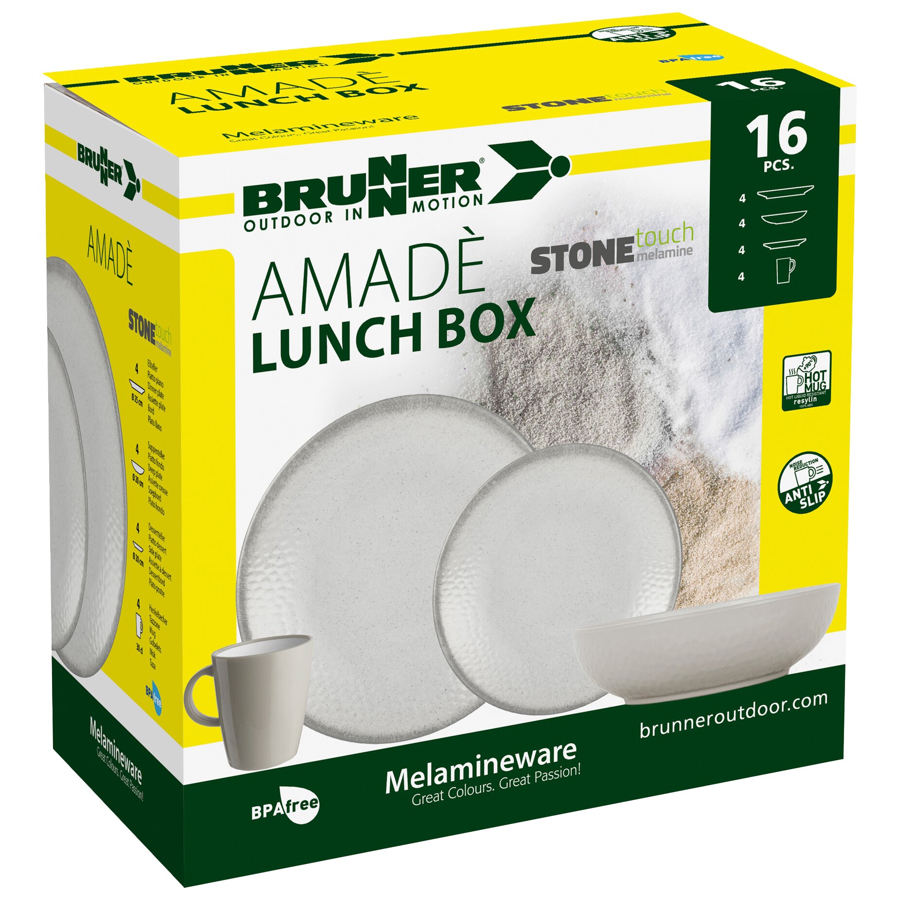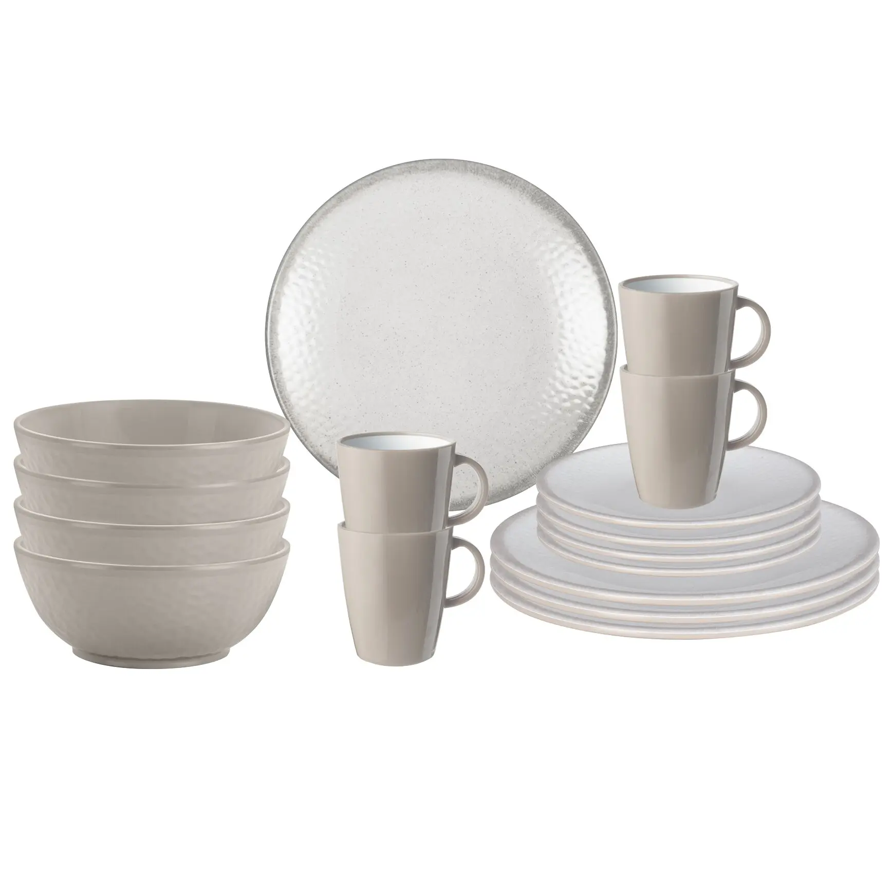 Zusatzinformation: Das 16-tlg. Set enthält:4 Essteller ø 25 cm4 Suppenteller ø 20 cm4 Dessertteller ø 20 cm4 Henkelbecher Resylin 300 ml