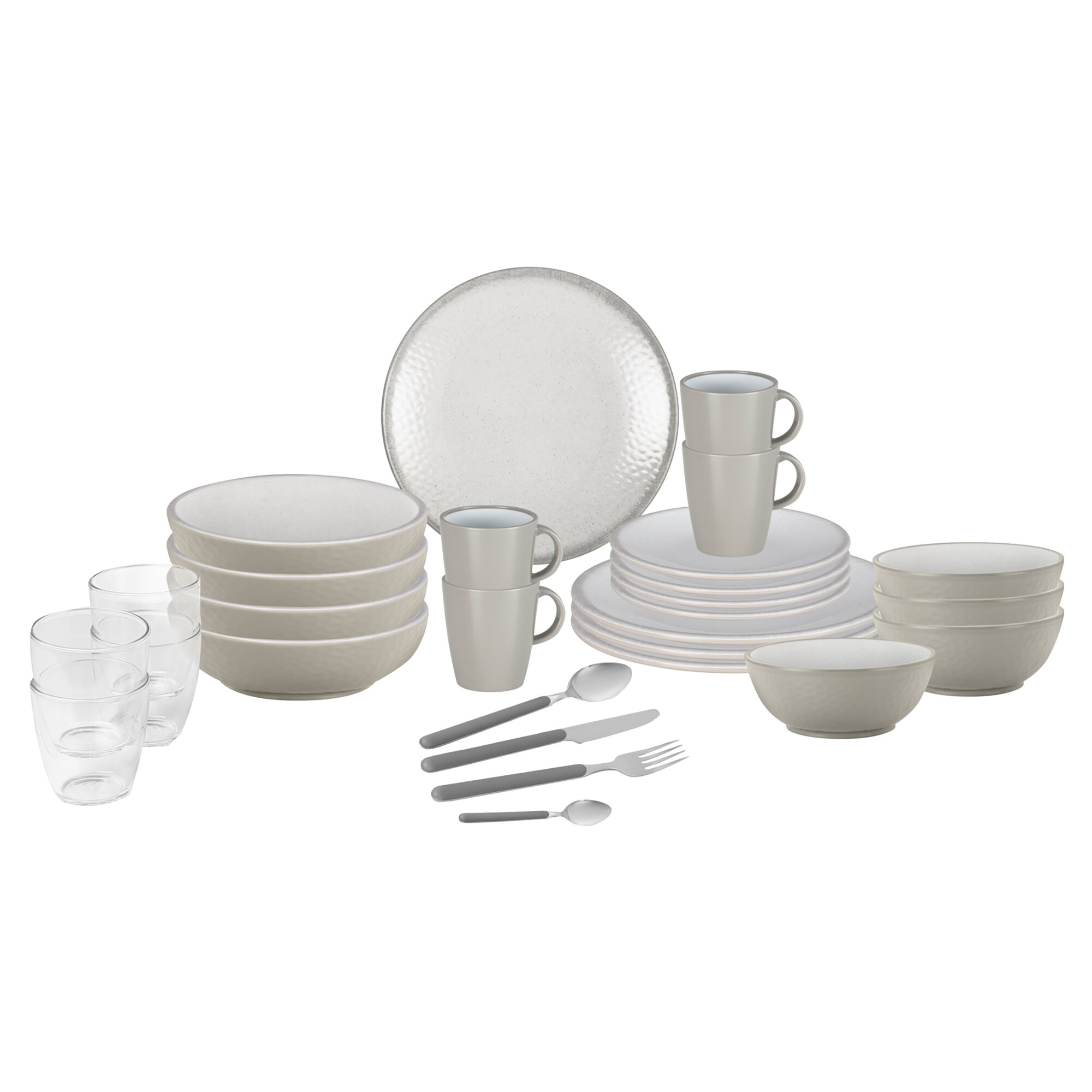 Das elegante Geschirr verbindet Design und Funktionalität. Es ist als 16-teiliges und als 40-teiliges Set erhältlich. Das 40-teilige Set wird mit Transportbox VIP geliefert.