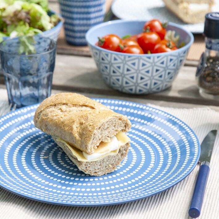 Das Geschirr der Serie Mix & Match ist perfekt fürs Camping und den Garten, denn es besteht aus Melamin und ist daher besonders kratzfest und praktisch unzerbrechlich. Außerdem ist es lebensmittelecht, leicht, spülmaschinenfest und BPA-frei. Schmutz und Flecken lassen sich einfach mit Spülmittel entfernen. Verwenden Sie keine Scheuermittel oder Topfkratzer!