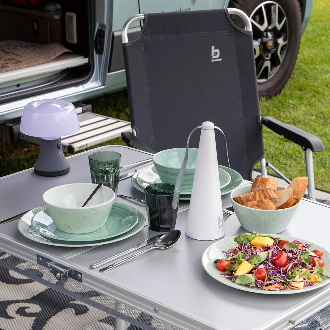 Das Geschirr der Serie Mix & Match ist perfekt fürs Camping und den Garten, denn es besteht aus Melamin und ist daher besonders kratzfest und praktisch unzerbrechlich. Außerdem ist es lebensmittelecht, leicht, spülmaschinenfest und BPA-frei. Schmutz und Flecken lassen sich einfach mit Spülmittel entfernen. Verwenden Sie keine Scheuermittel oder Topfkratzer!
