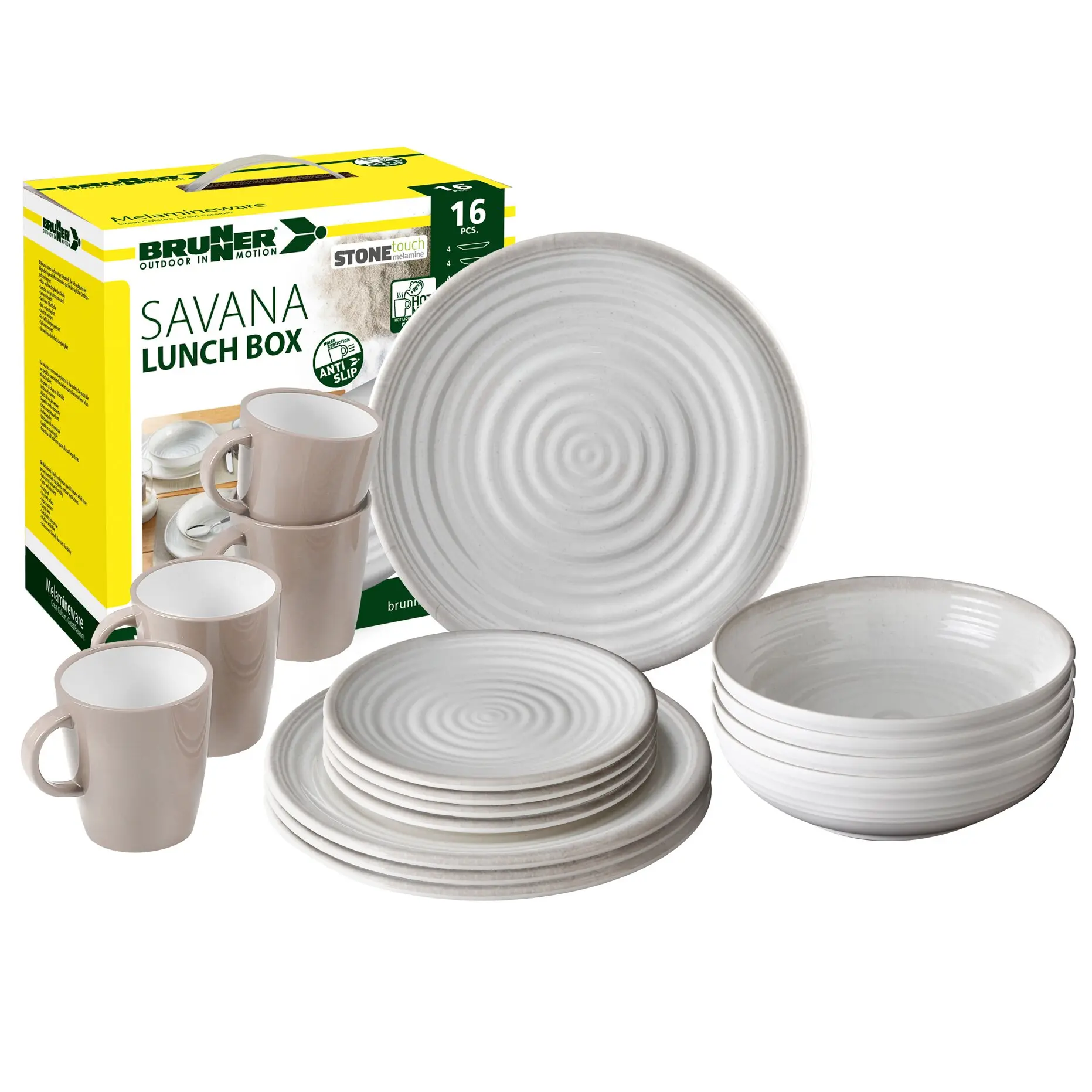 Die Geschirrserie Savana mit ihrer formschönen Haptik und Optik in einem dezenten Braunton. Das Geschirrset hat eine Anti-Slip-Unterseite.