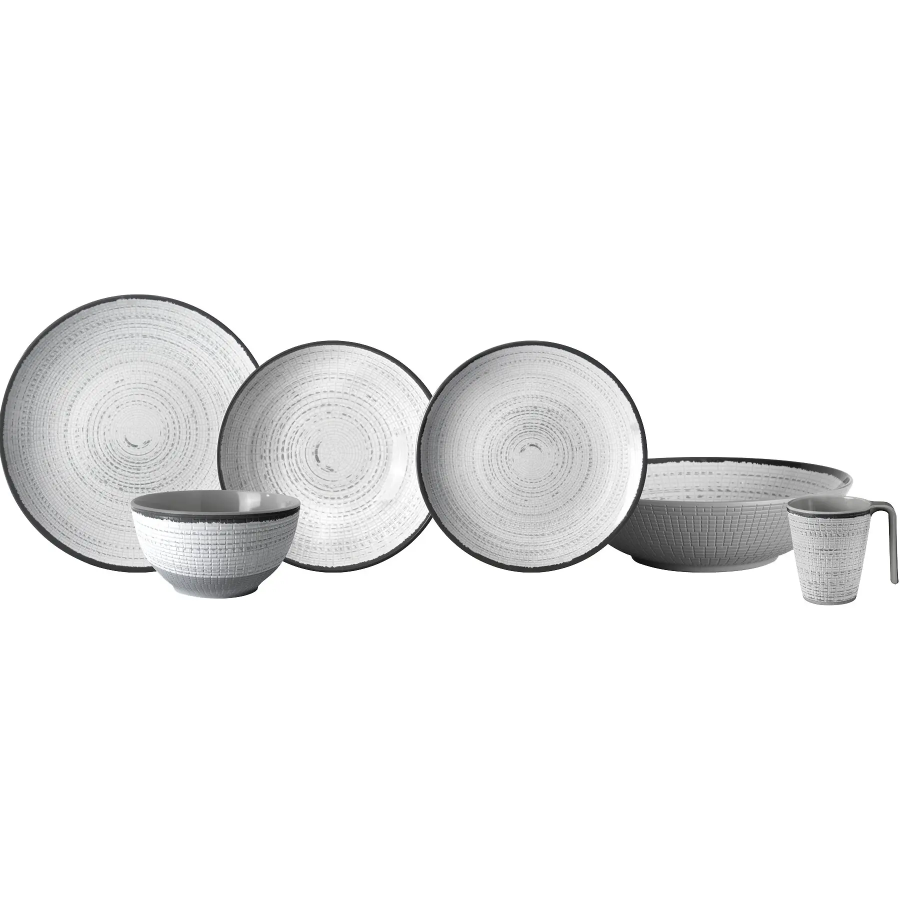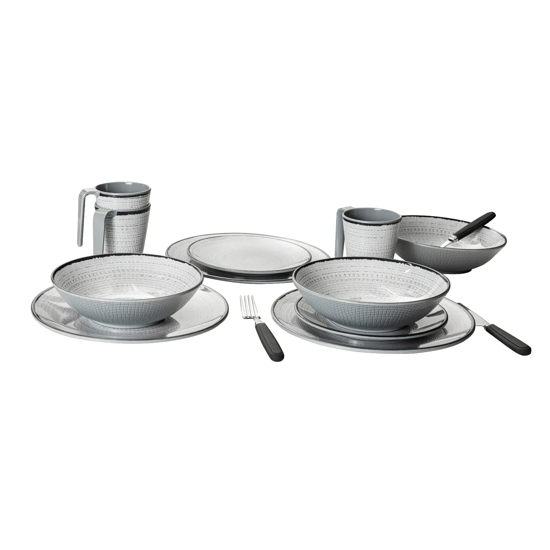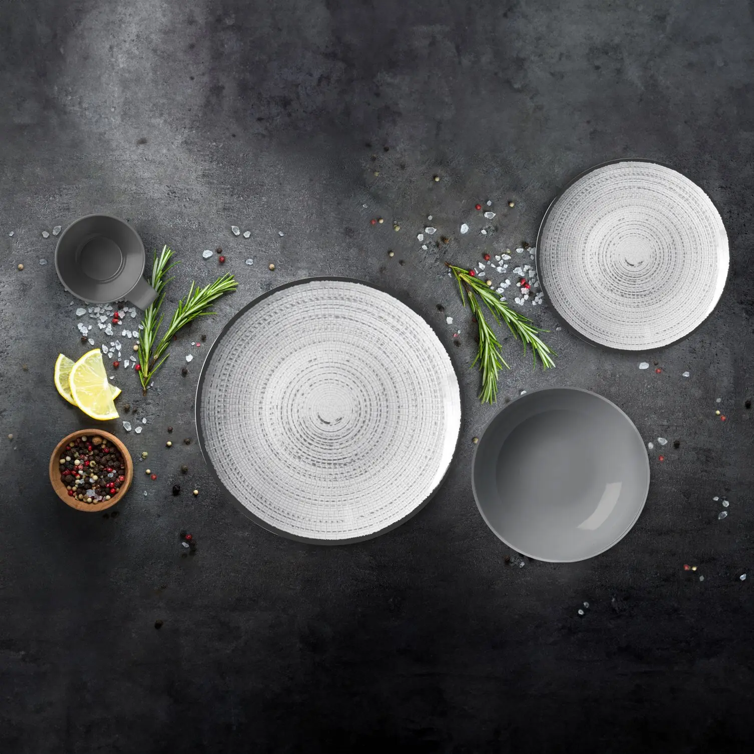 Die besondere Haptik und das elegante Design machen das Geschirr Tivoli zu etwas Besonderem. Das Geschirrset hat eine Anti-Slip-Unterseite. Die Henkelbecher sind aus Resylin.