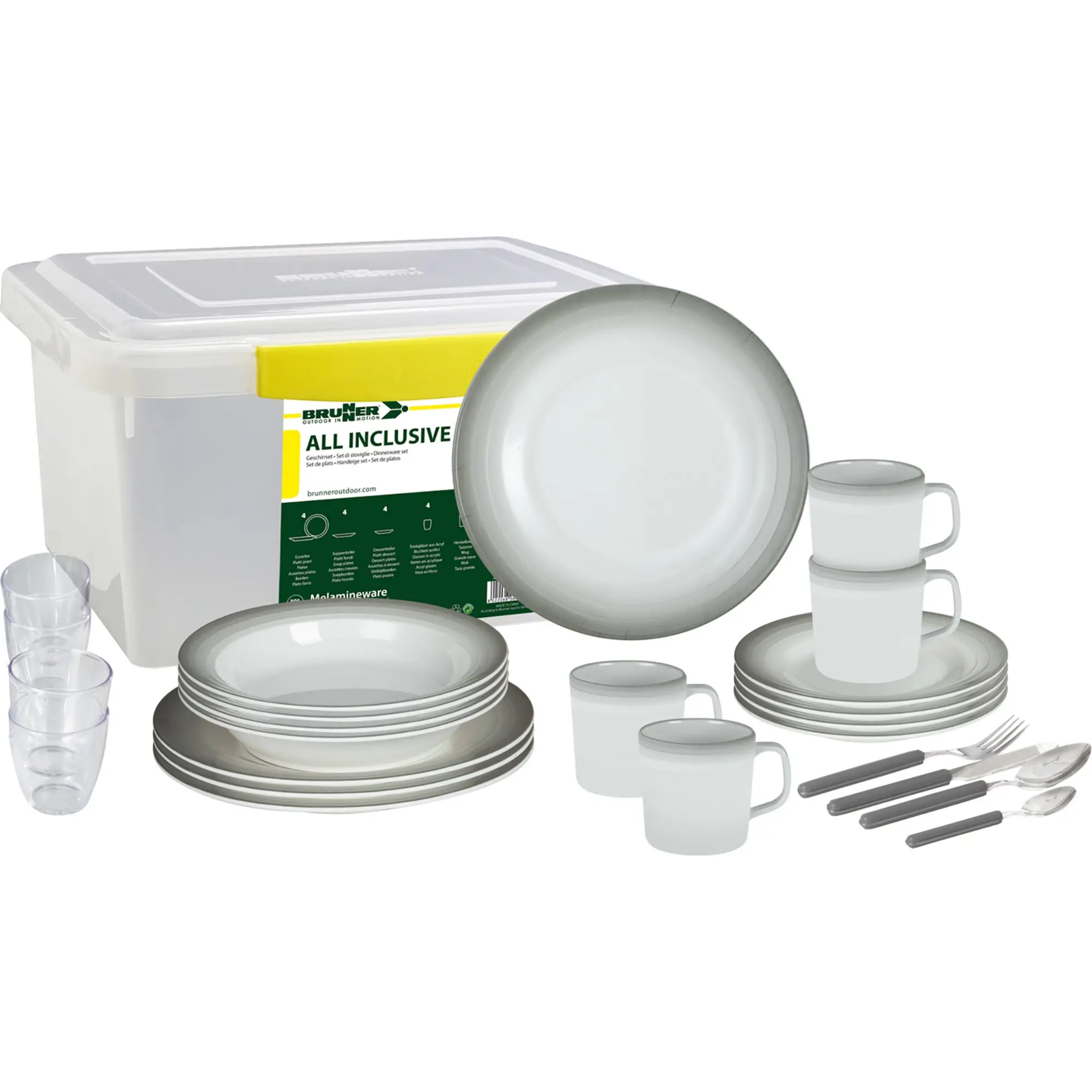 36-teiliges Geschirr-Komplettset aus Melamin mit Transportbox.