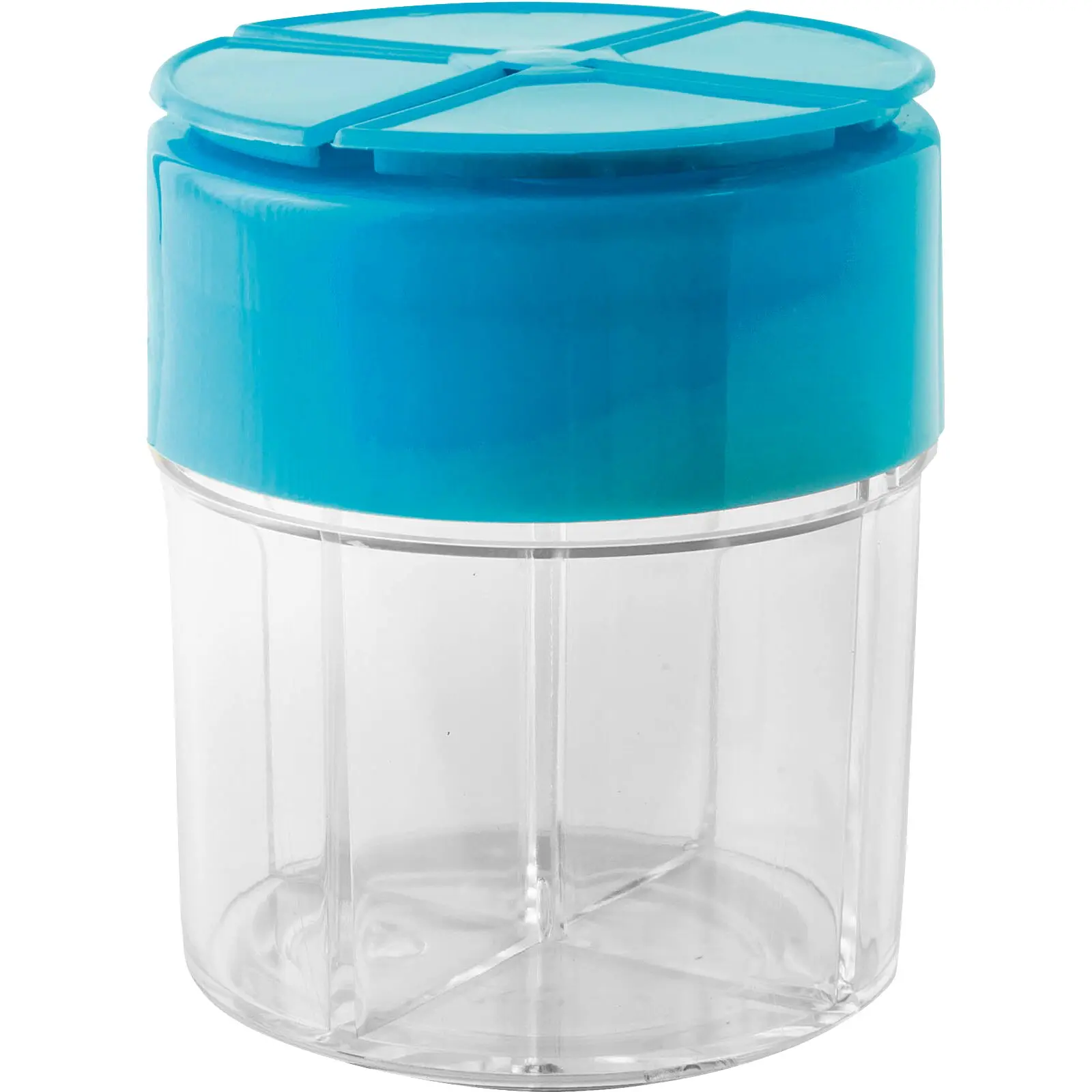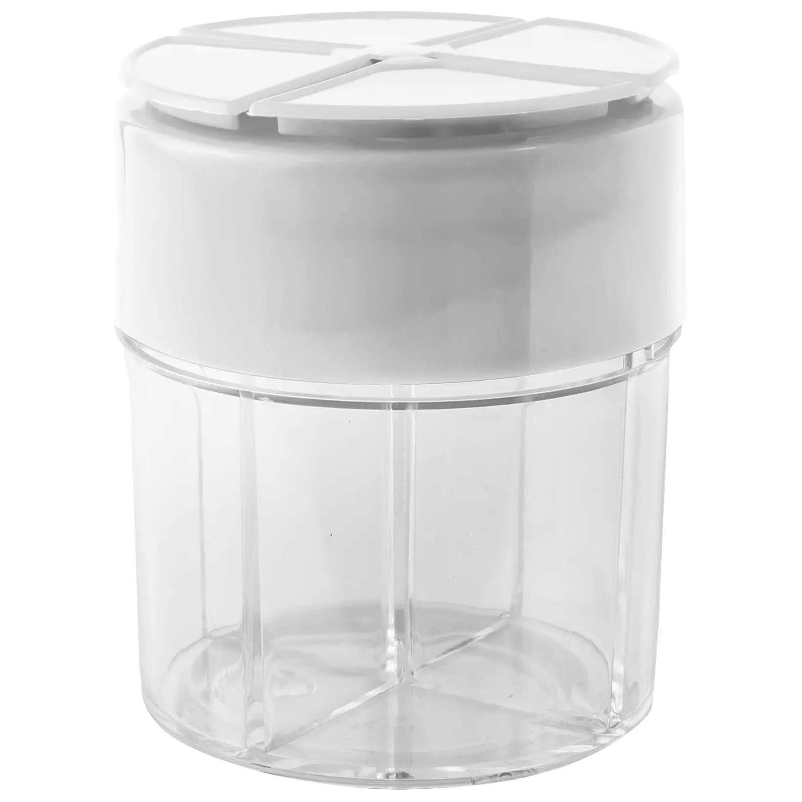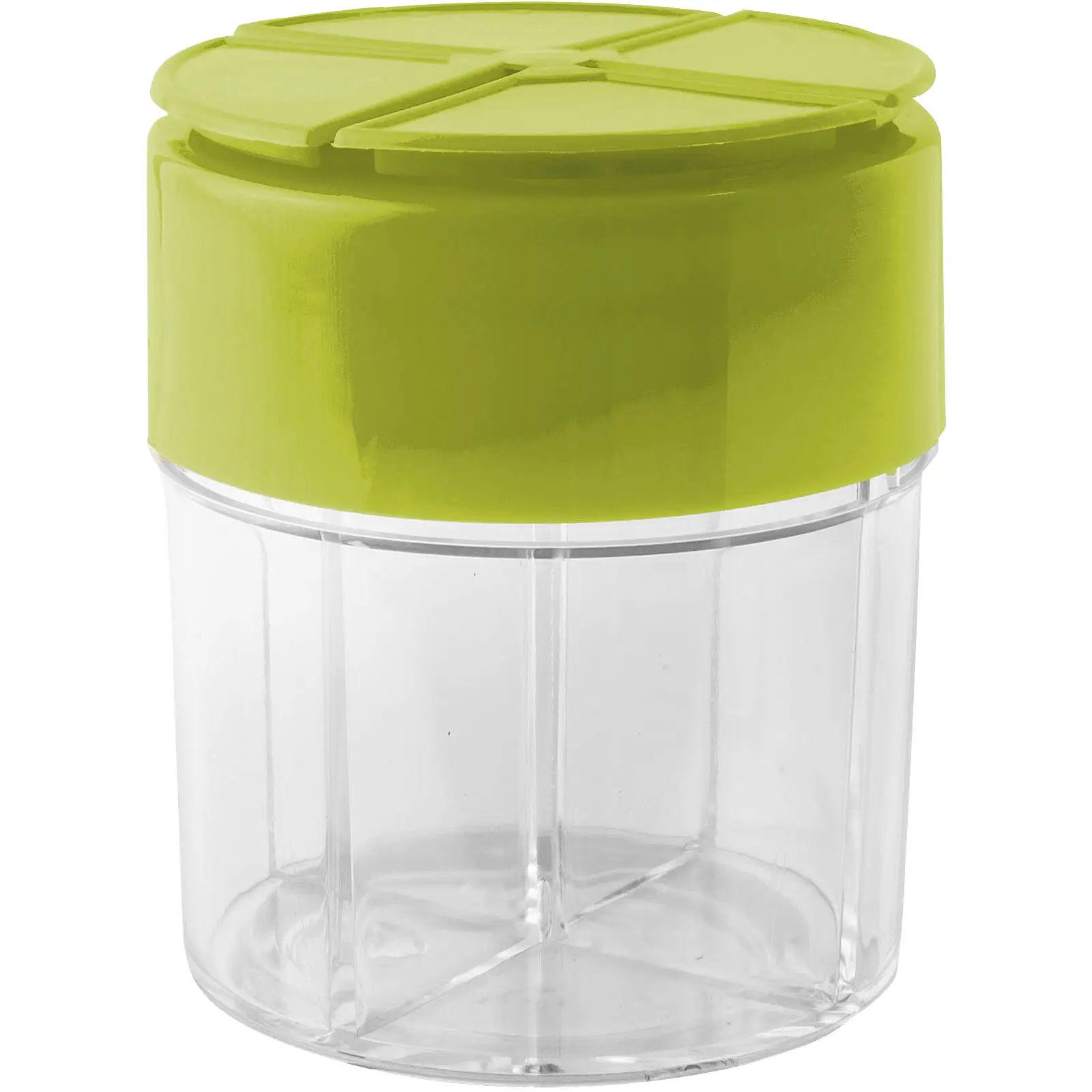 Praktische Gewürzbox aus hochwertigem Kunststoff. Die 4 getrennten Kammern mit je 50 ml können mit verschiedenen Gewürzen nach Wunsch befüllt werden.
