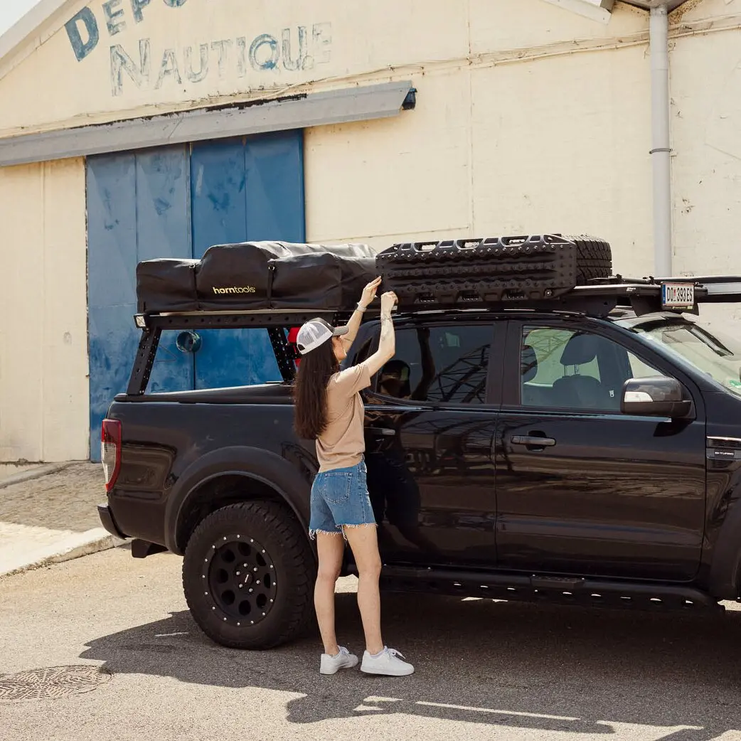 Die horntools Recovery Boards bieten durch ihr robustes Traktionsmuster zuverlässigen Halt auf weichem Untergrund wie Schnee, Schlamm oder Sand. Sie sind ideal zur Selbstbergung oder als Unterlage geeignet. Das leichte, widerstandsfähige Material macht sie transportfreundlich, die kompakte Form spart Platz. Mit der passenden Halterung lassen sie sich sicher am Fahrzeug befestigen. Tragkraft: 10 t.