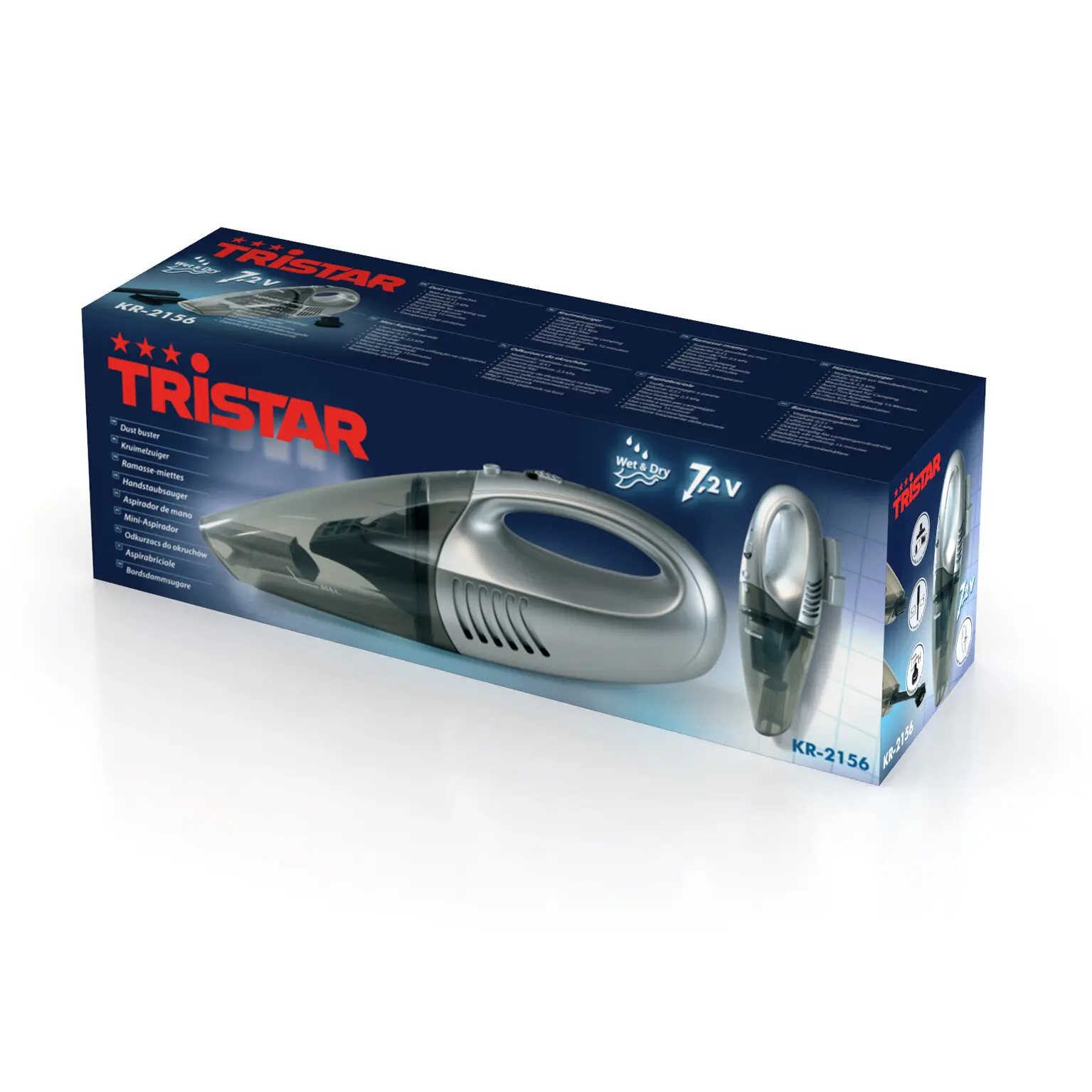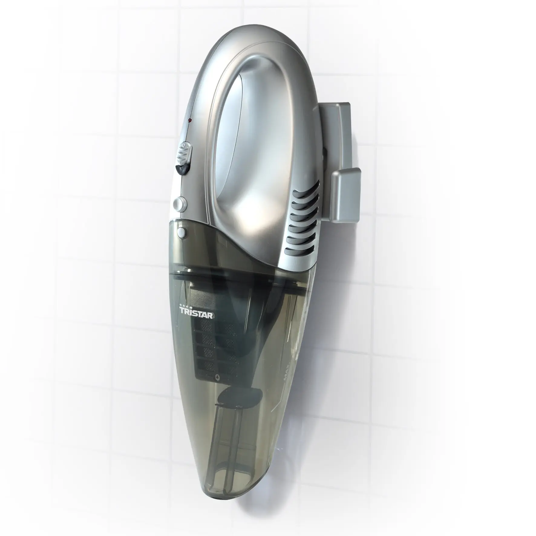 Nass- und Trocken-Krümelsauger mit ergonomischem Handgriff. Der Handstaubsauger verfügt über eine Bürste und eine Düse zum Aufnehmen von Flüssigkeiten und ist mit einer Wandhalterung ausgestattet. Der Filter lässt sich leicht reinigen.