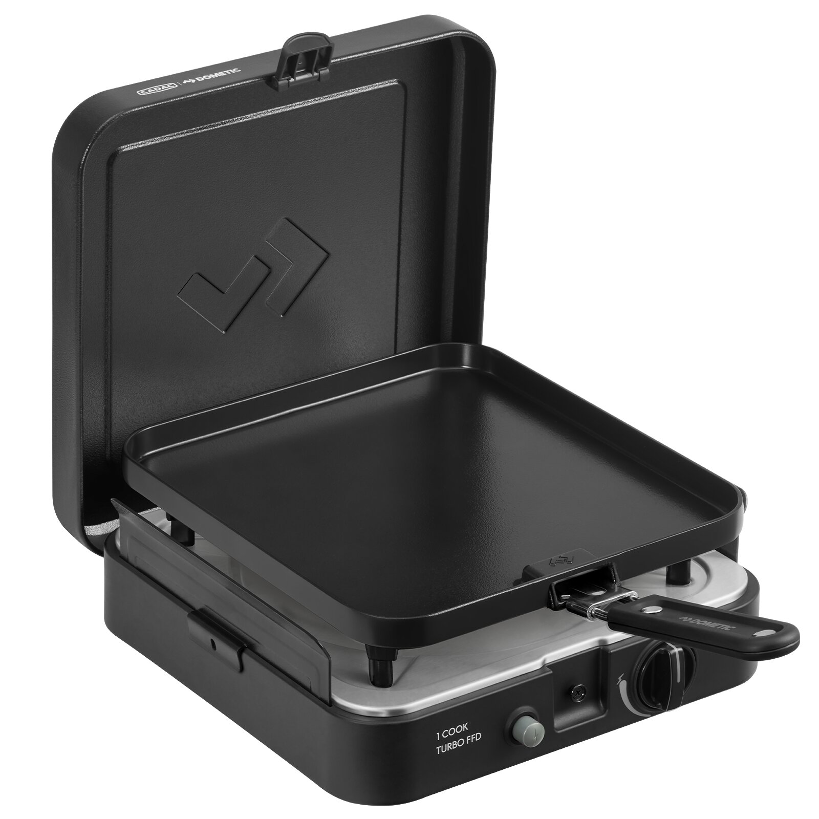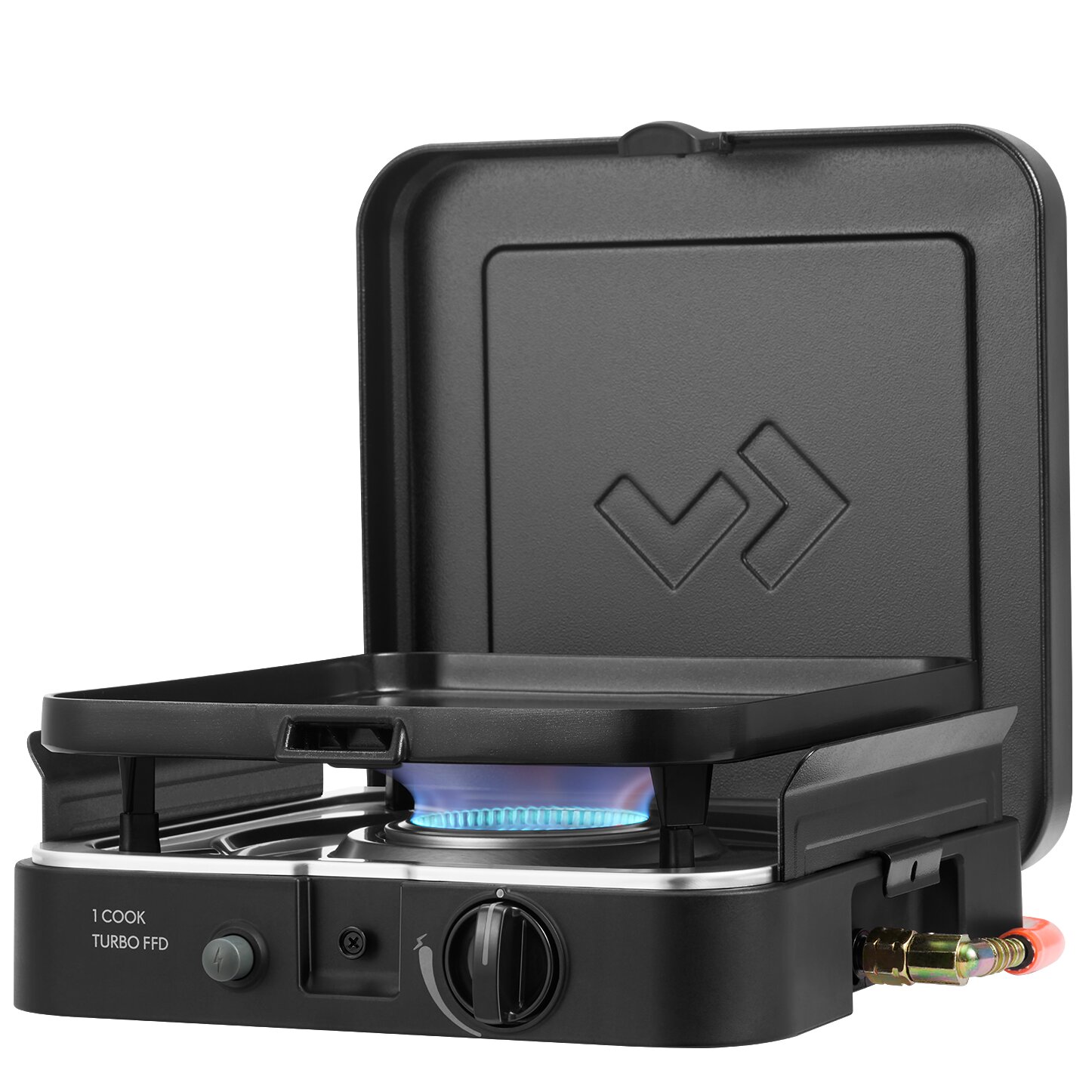 Der 1 Cook Turbo ist ein leistungsstarker, tragbarer Gaskocher, ideal für Outdoor-Abenteuer. Kompakt und leicht, bietet er schnelle Wärme und ist vielseitig einsetzbar. Dank der Zündsicherung auch für den Innenbereich geeignet. Inklusive sind ein Topfständer, ein Kaffeekannenständer, Windschutzbleche, eine keramikbeschichtete Grillplatte, ein abnehmbarer Griff und eine Tragetasche. Grillfläche: 25 x 27 cm.