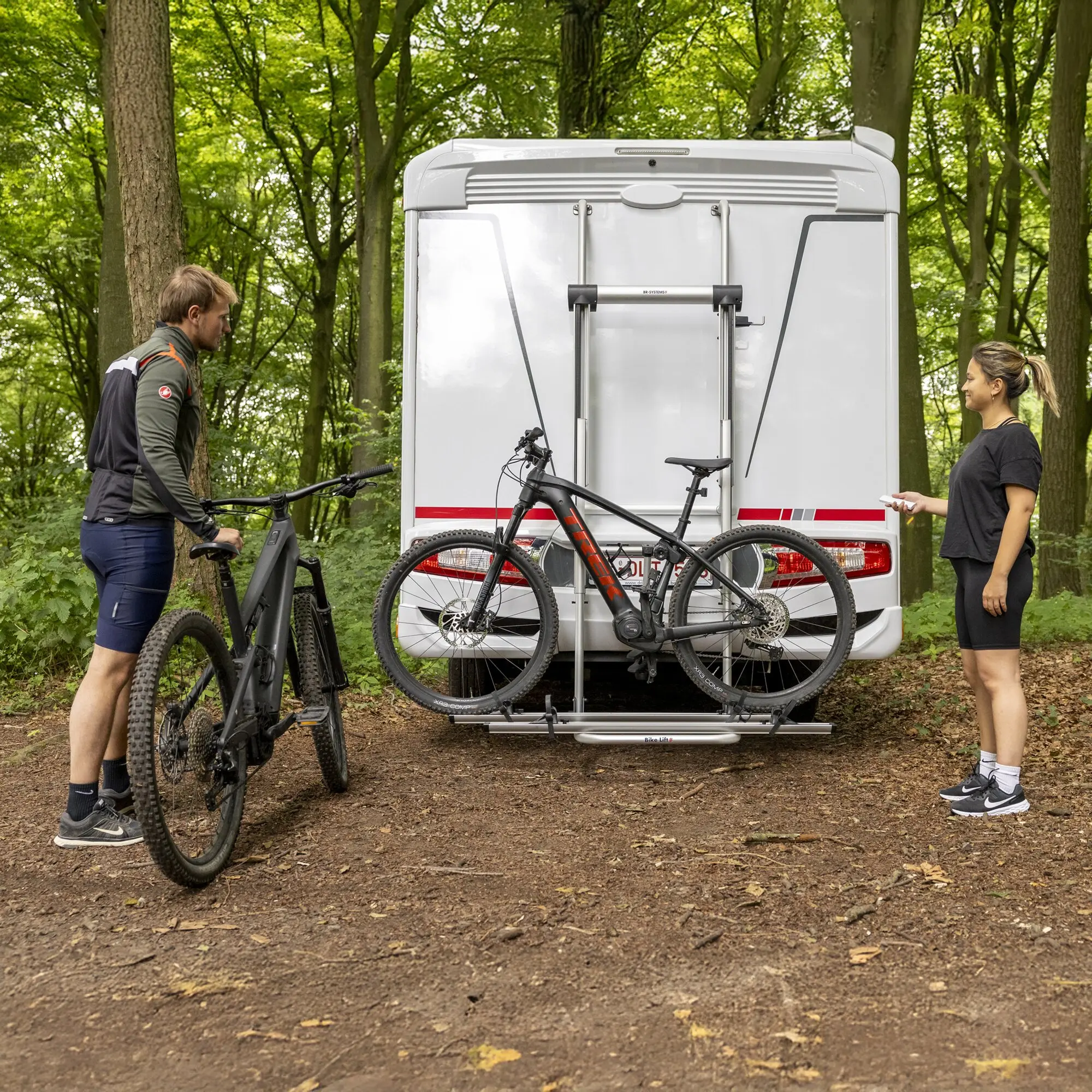 Für den Transport von bis zu zwei E-Bikes geeignet. Verstellbare Radhalterungen und anpassbare Fahrradklammern sorgen dafür, dass unterschiedliche Fahrradtypen sicher transportiert werden können.