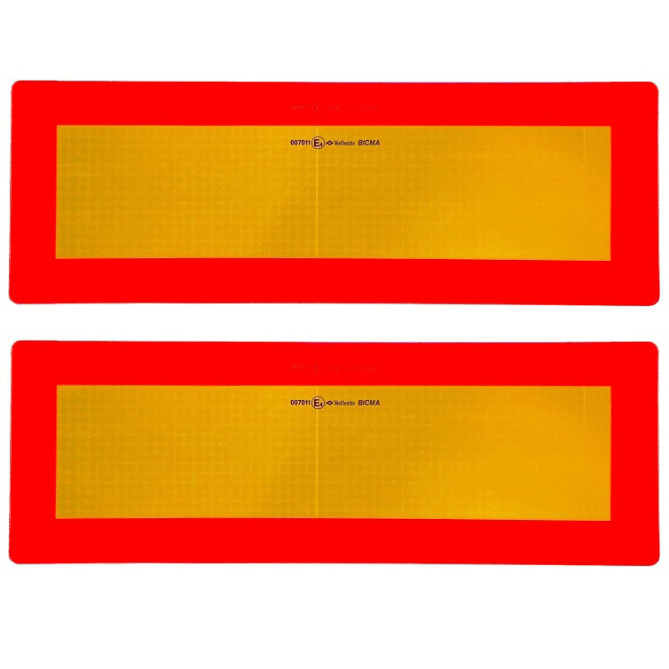 Reflektierende (gelb) und fluoreszierende (rot) Heckwarntafel Spanien für Gespanne > 12,00 m, Norm ECE 70.01.