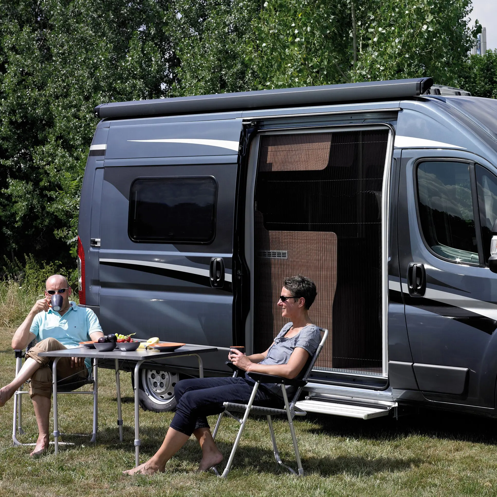 Einfach plissierter, hochwertiger Insektenschutz für Schiebetüren des Fiat Ducato H2 X250/X290 und baugleicher Fahrzeuge. Er füllt den Türausschnitt komplett aus.