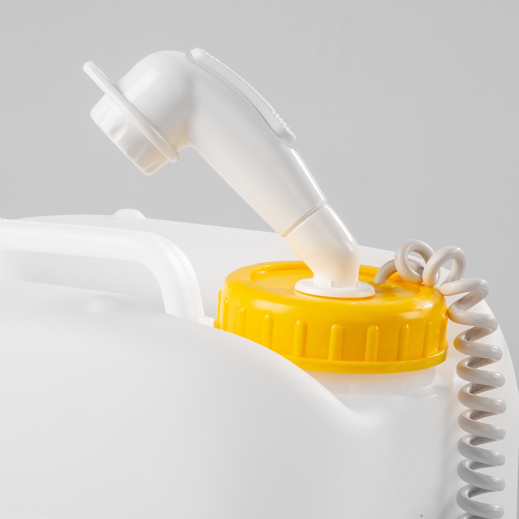 Für Camping, Freizeit und Sport. Stecke den Stecker einfach in die 12-V-Steckdose, ziehe den Schlauch aus dem Kanister, schiebe den Hebel vom Brause-Handstück leicht nach vorne und schon fließt Wasser. Zum Schließen drückst du und schiebst den Hebel leicht nach hinten. Lieferumfang: Kanister (20 l), Tauchpumpe 12 V mit Wendeleitung 4 m und Stecker für Zigarettenanzünder, Brausekopf zum Abstellen, 2 m Schlauch.