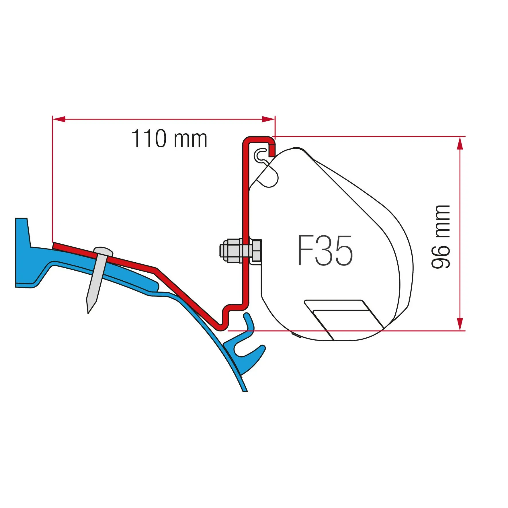 Bausatz für Markise F35 an Ford Custom Capland/Capfun Für L2. Bestehend aus 2 Adapterplatten je 12 cm.