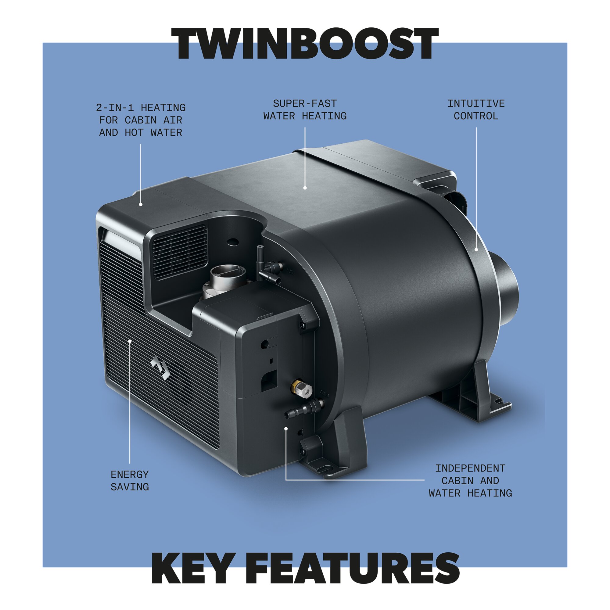 Die Dometic TwinBoost Kombiheizung heizt den Fahrzeuginnenraum und sorgt für warmes Wasser. Mit zwei separaten Gasbrennern, flexibel und energieeffizient, können Raumluft und Wasser entweder gleichzeitig oder unabhängig voneinander erwärmt werden. Die Hybridmodelle (6000H und 8000H) verfügen zusätzlich über zwei elektrische Heizstäbe in den Brennerkammern. Intuitive Steuerung über Smart-Bedienpanel. Inkl. Kabinenbelüftungsmodus.