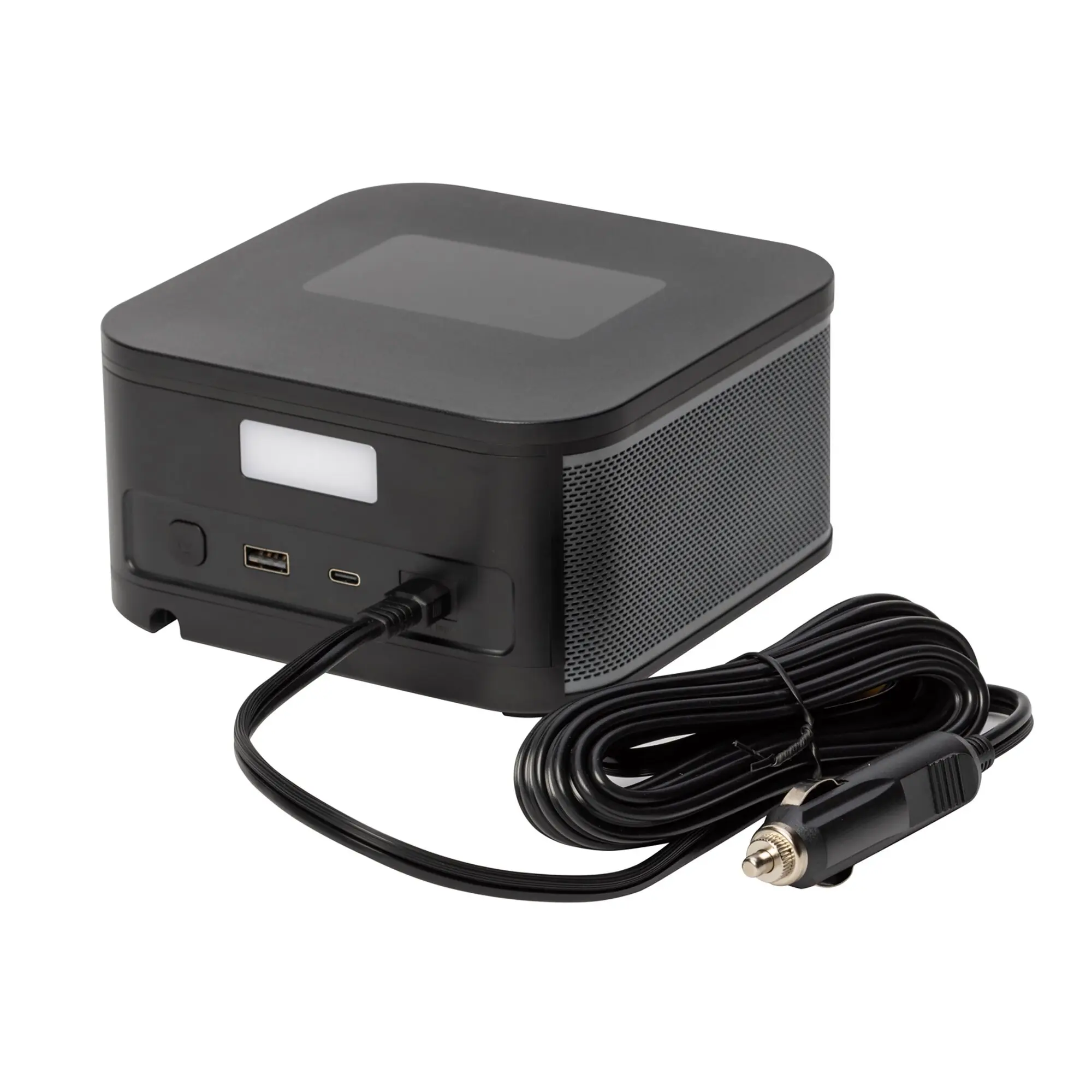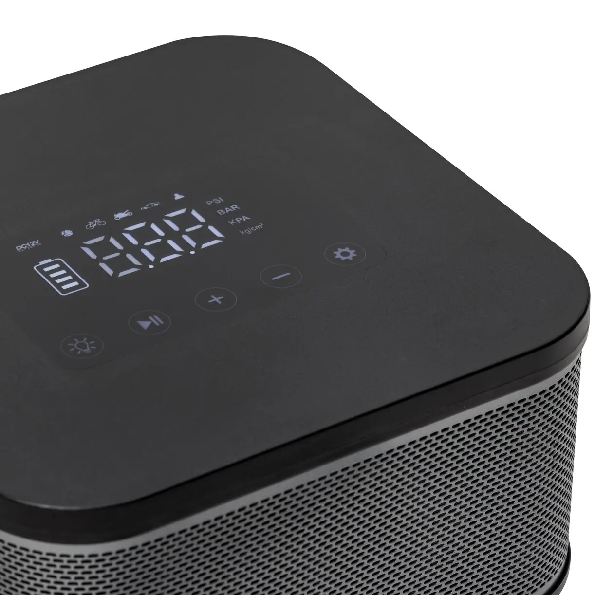 Wiederaufladbarer kabelloser tragbarer Kompressor mit Lithium-Ionen-Akku und USB-Anschluss zum Aufladen. Ausgestattet mit einem digitalen Touchscreen-Display. Ideal für den Einsatz überall dort, wo er benötigt wird, ohne dass eine Steckdose in der Nähe sein muss. Bestens geeignet zum Aufpumpen von Auto-, Motorrad-, Fahrradreifen und Bälle.